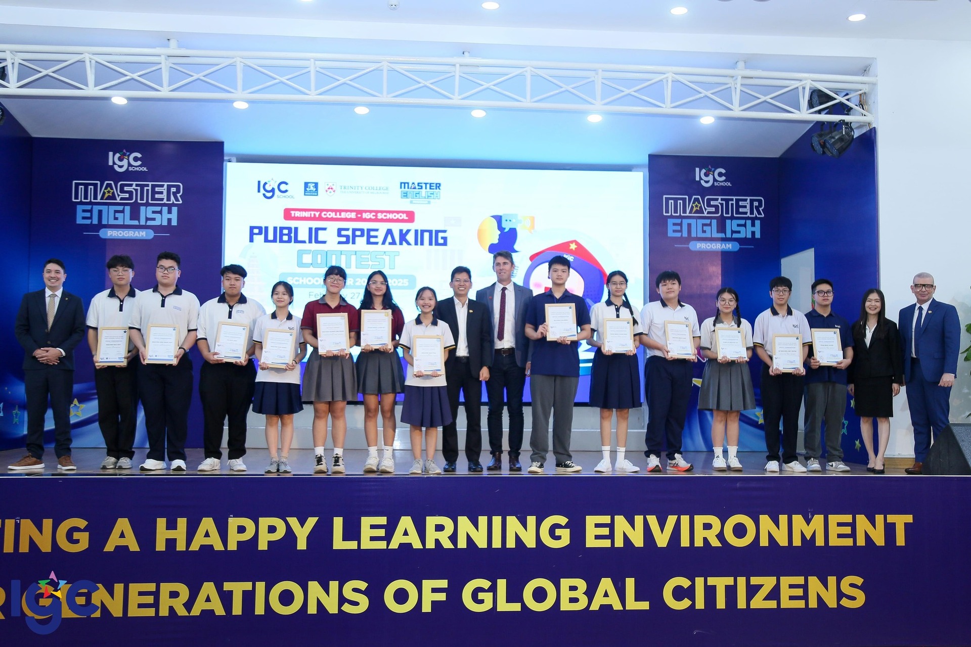 Cuộc thi Hùng biện tiếng Anh: Trinity College - IGC School Public Speaking Contest là một sân chơi trí tuệ tuyệt vời, nơi các bạn học sinh thể hiện bản lĩnh và tài năng. Hai gương mặt xuất sắc của Trường THCS - THPT Ban Mai: Bùi Nguyên Bình (lớp 10i) và Trần Minh Quân (lớp 11T2), đã vượt qua nhiều thử thách để ghi dấu ấn tại cuộc thi này, khi cả hai đều xuất sắc đạt giải Khuyến khích.