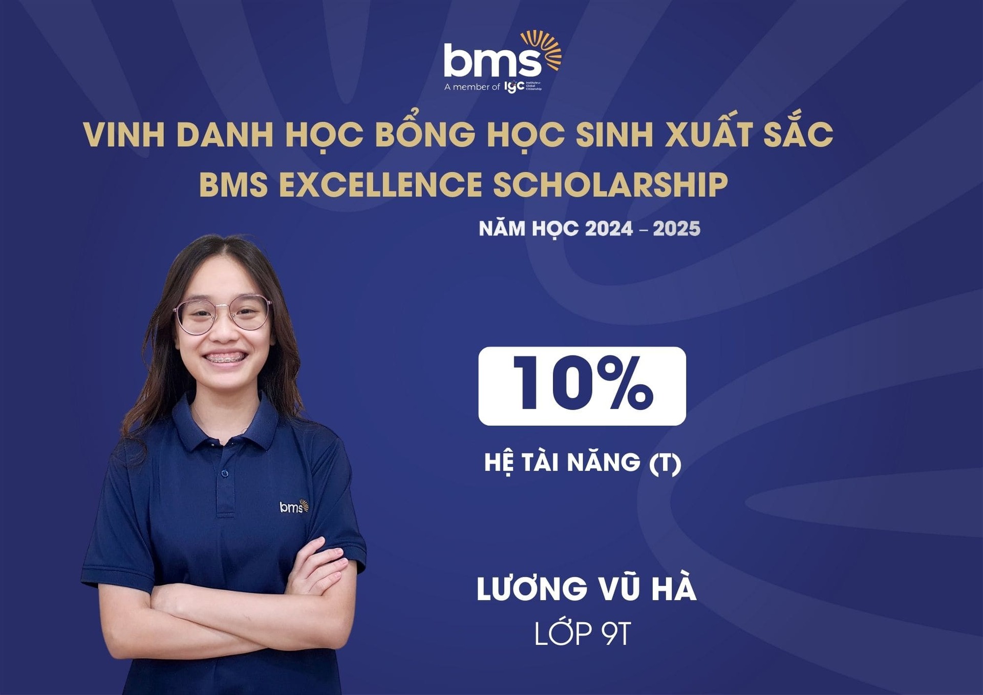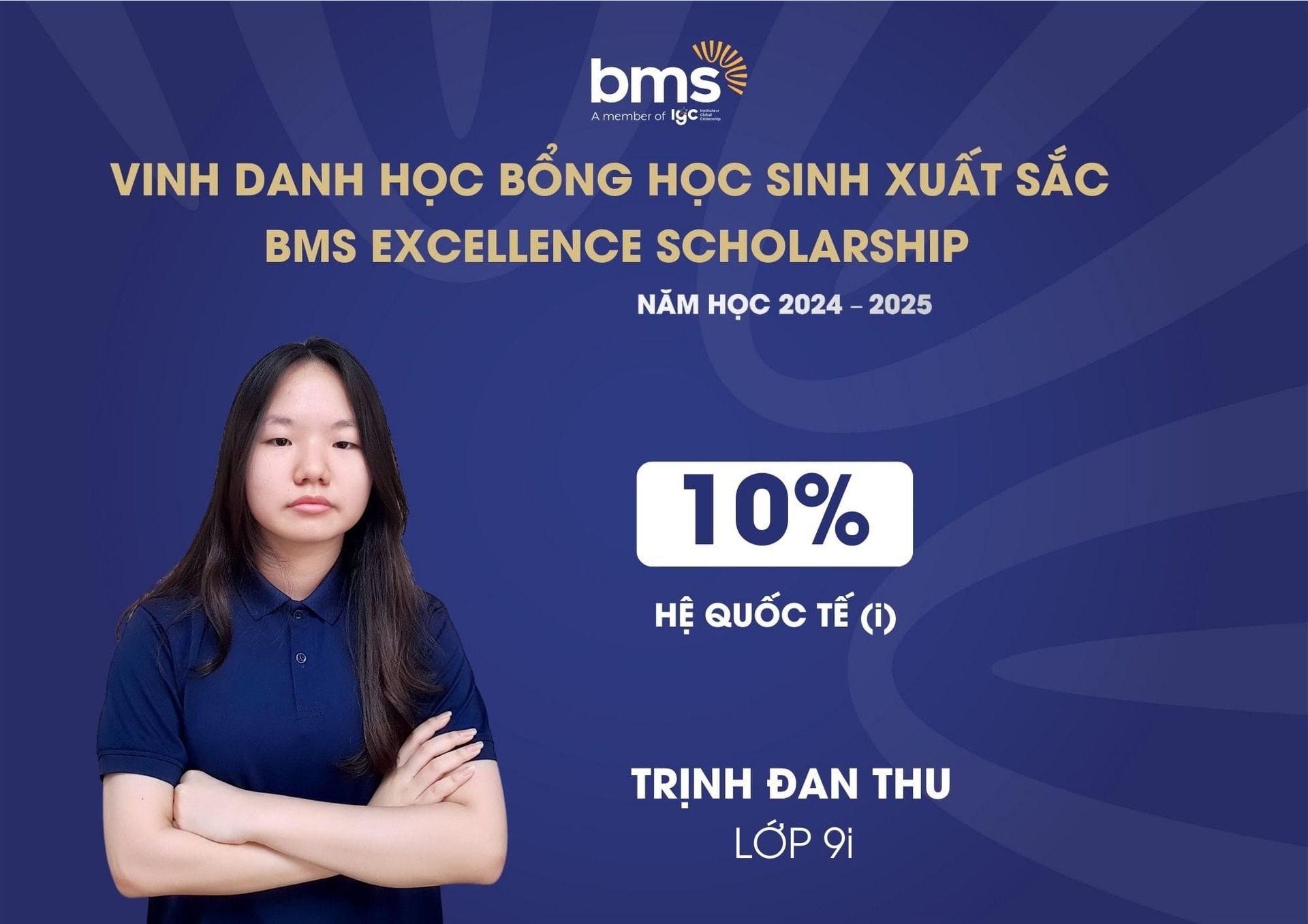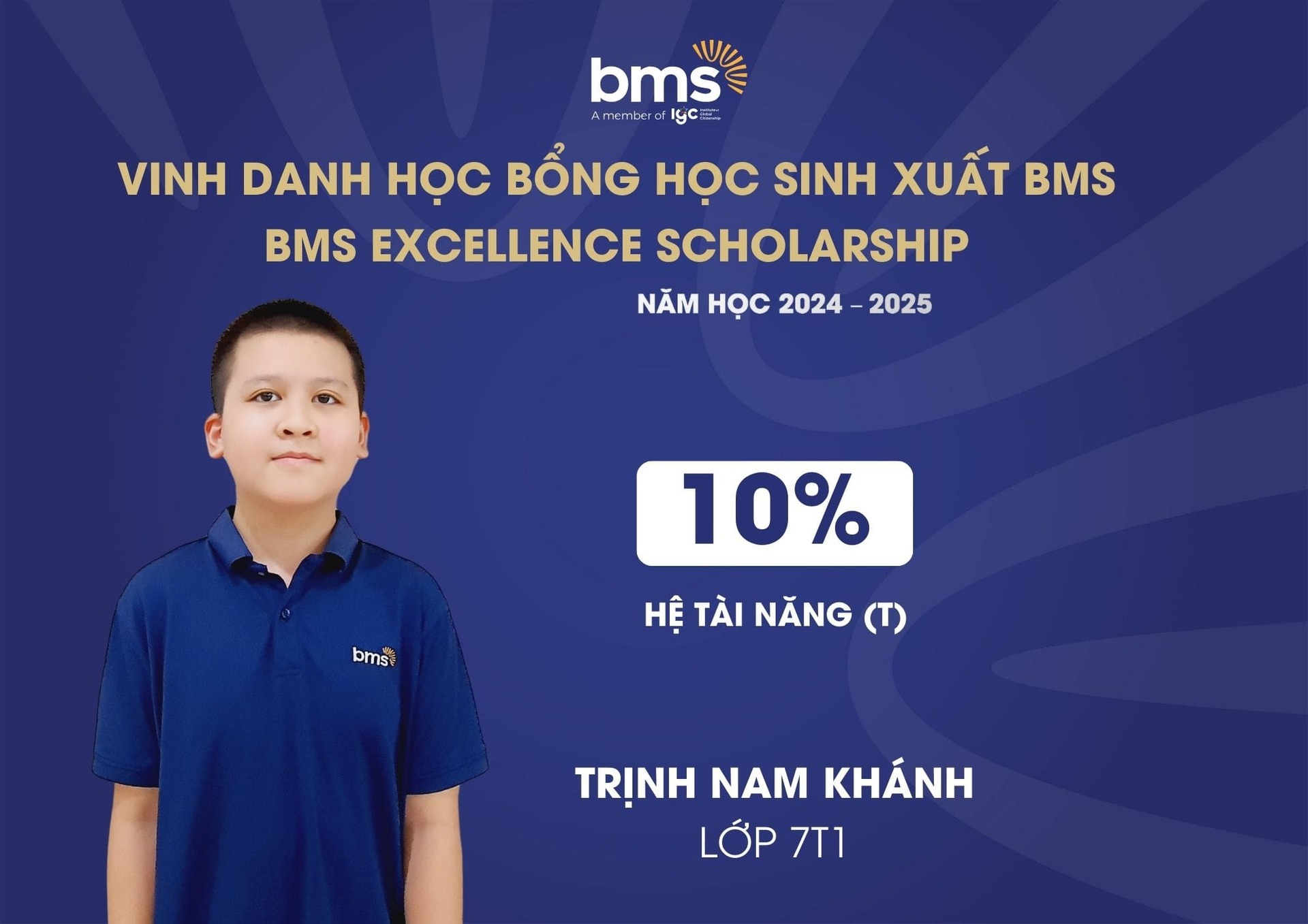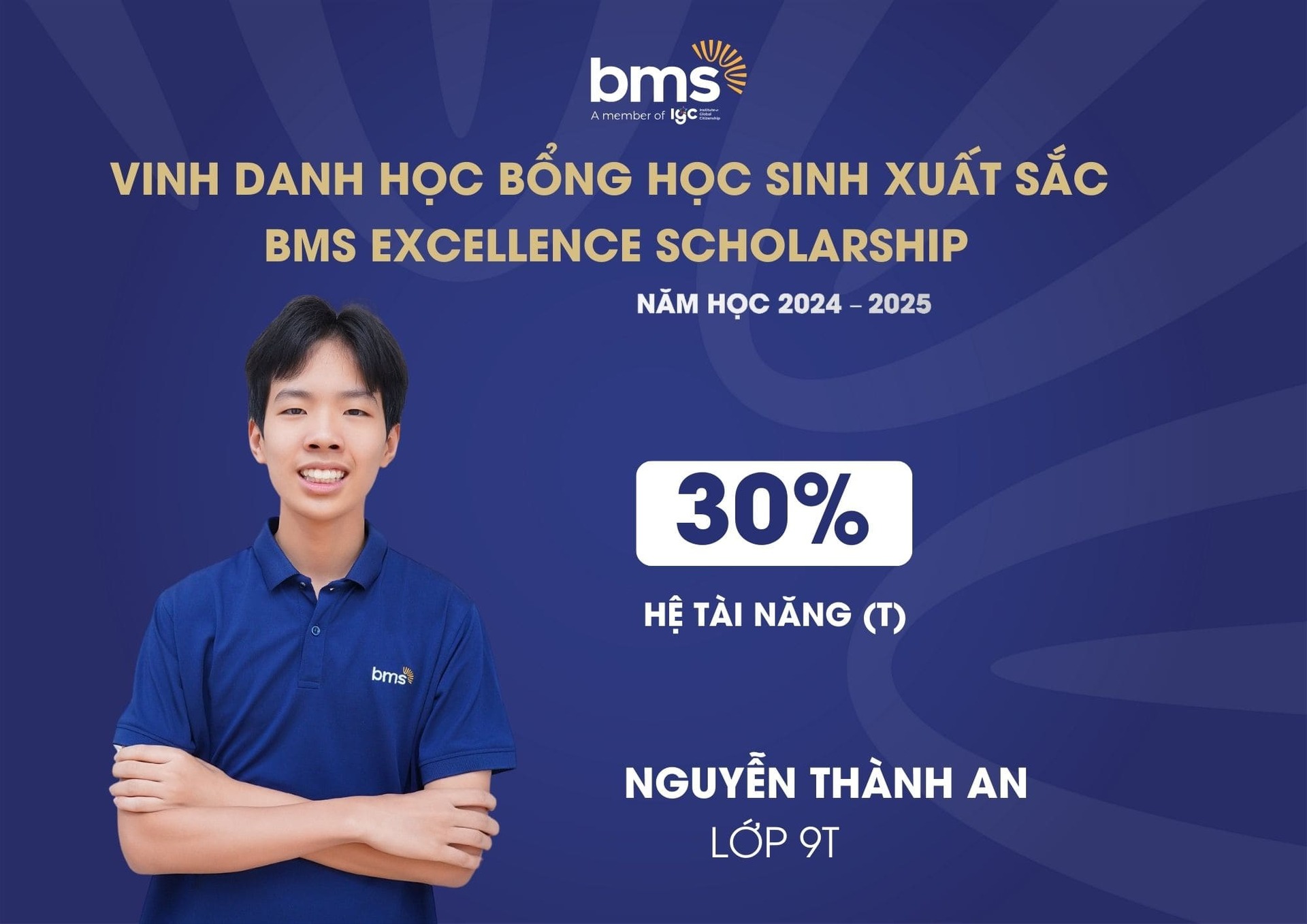Năm học 2024 – 2025, học bổng “BMS Excellence Scholarship” tiếp tục được trao cho các học sinh khối 7, 8, 9, 11, 12 có thành tích xuất sắc trong học tập và rèn luyện. Đây là chương trình học bổng nhằm tôn vinh những nỗ lực và thành tích vượt trội của học sinh trong học tập và các hoạt động ngoại khóa.