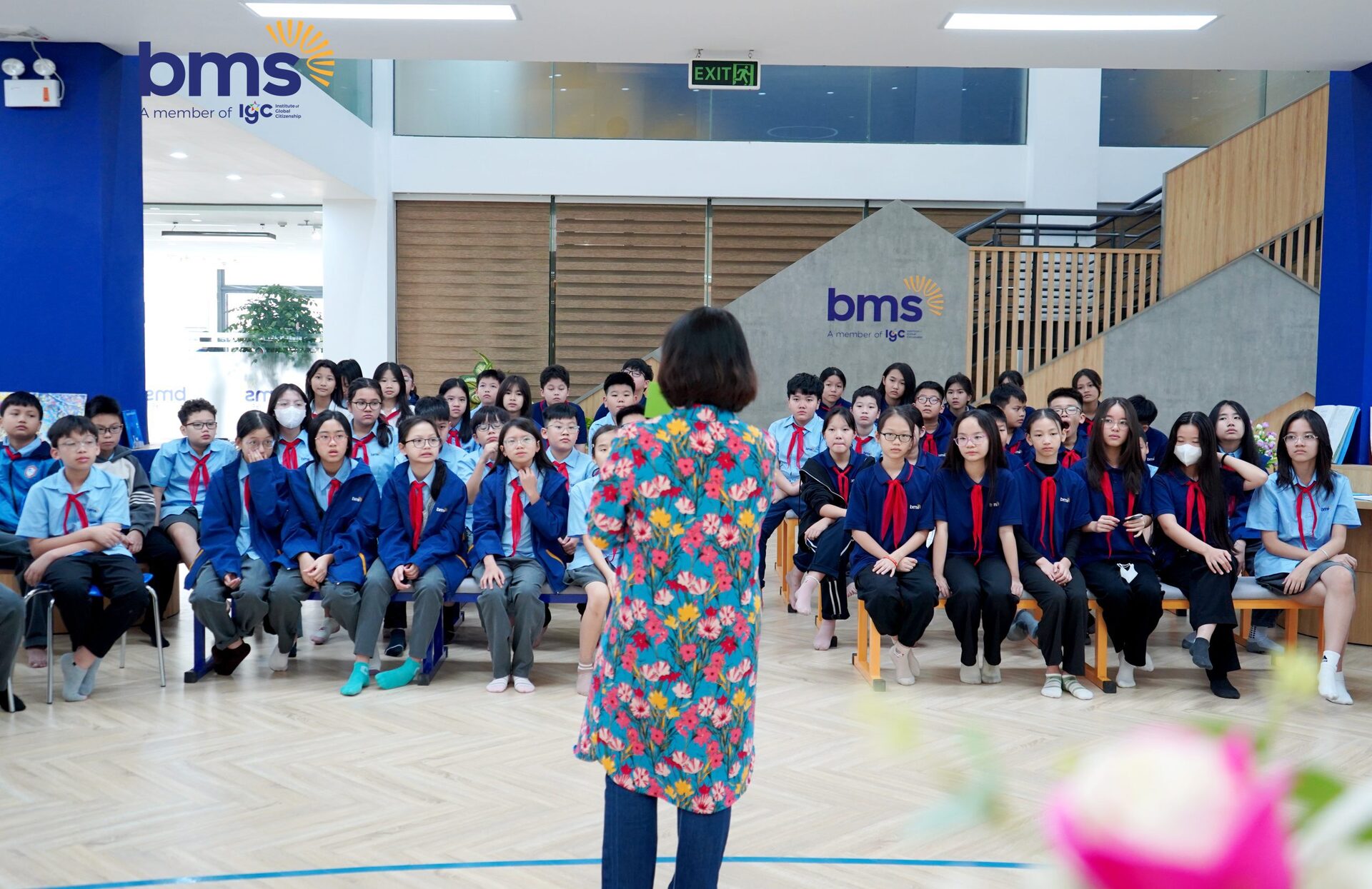 Trong buổi gặp gỡ và giao lưu cùng tác giả – diễn giả Nguyễn Thụy Anh với chủ đề “Sách vừa là thầy – Sách vừa là bạn”, các bạn học sinh BMS đã vô cùng hào hứng và tích cực tương tác trước các vấn đề mà cô Thụy Anh đưa ra.