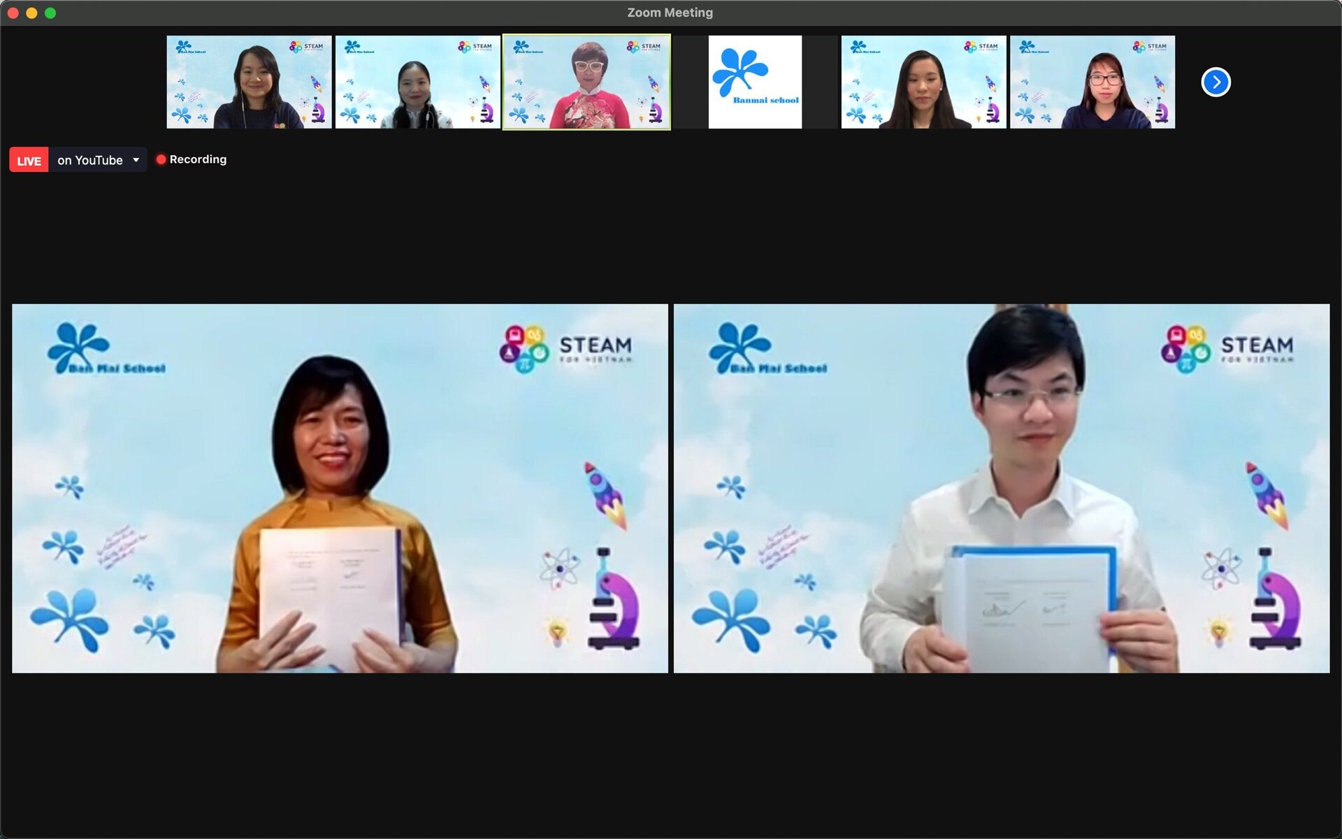 Trong thời gian Hà Nội đang thực hiện giãn cách, lễ ký kết hợp tác giáo dục giữ BMS và STEAM for Vietnam được tổ chức trên nền tảng trực tuyến, phát trên kênh Youtube và Fan Page. Sự tham gia online đông đảo của các Thầy Cô, Cha Mẹ, các con học sinh đã góp phần thực hiện tuân thủ chỉ thị 16, lan tỏa thông điệp kết nối và phát triển giáo dục không khoảng cách trong thời đại công nghệ thông tin.