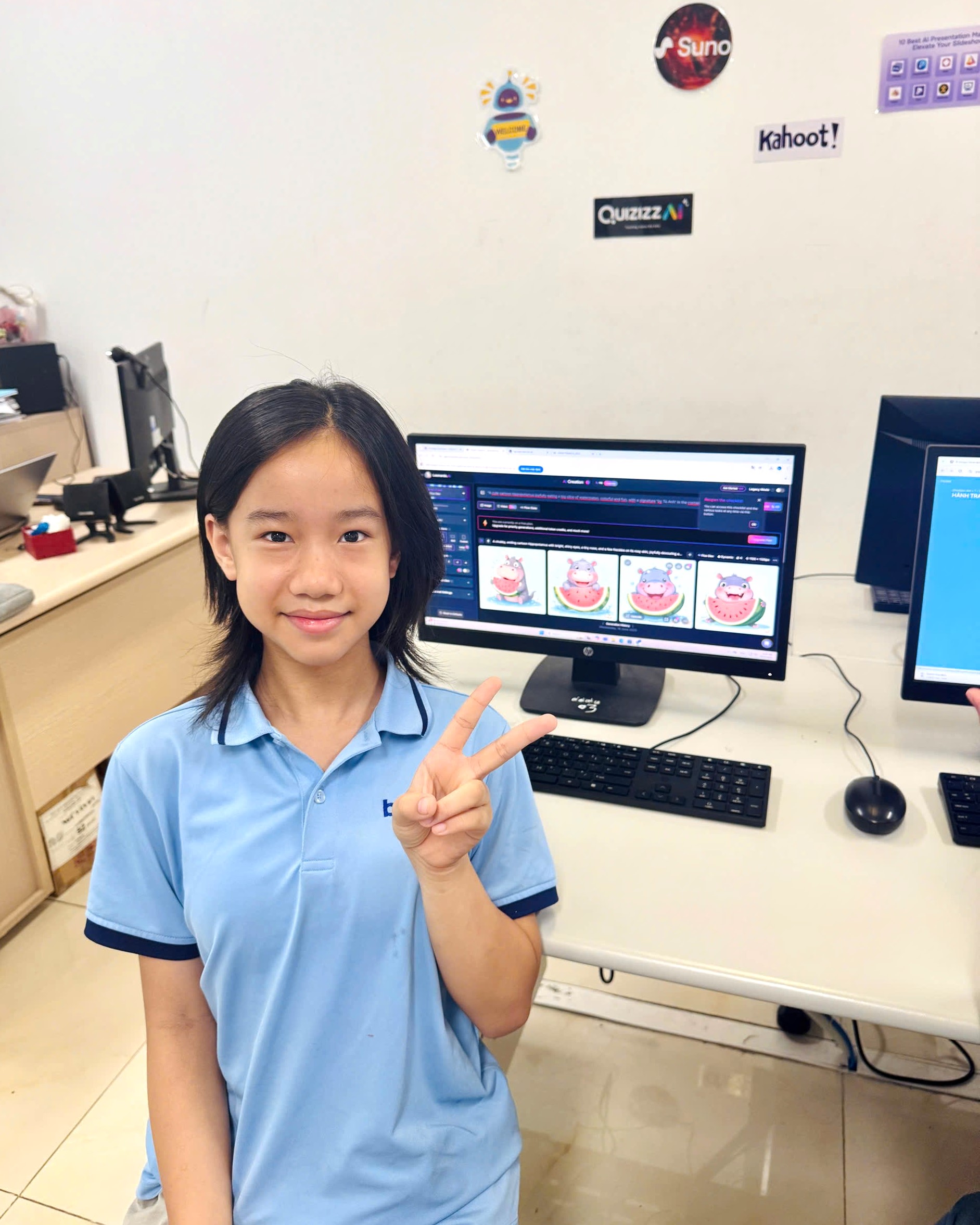 Chương trình cũng lồng ghép các tiết học tiếng Anh theo chủ đề thực tiễn giúp học sinh làm quen với cách học liên môn, tăng cường phản xạ ngôn ngữ trong bối cảnh đời sống hàng ngày. Điểm nổi bật của khóa học năm nay là học sinh được tiếp cận công nghệ Trí tuệ nhân tạo (AI) thông qua các tiết học sáng tạo, nơi các bạn có thể tự tay tạo sản phẩm học tập ứng dụng công nghệ. “Tiết học AI thực sự khiến các con hào hứng và mở rộng tư duy. Đây là cơ hội để học sinh lớp 5 sớm làm quen với các công cụ học tập của thời đại số” – cô Kim Dung, giáo viên phụ trách chương trình chia sẻ.