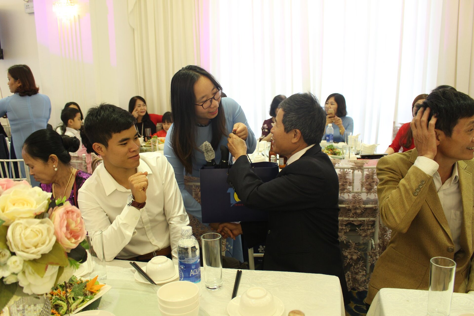 Niềm vui được kết đọng trong những nụ cười và những niềm xúc động, khi người thân của mỗi CB – GV- NV được Ban Lãnh đạo Nhà trường trực tiếp gửi đến những món quà đong đầy yêu thương và tri ân sâu sắc, là những lời động viên, lời cảm ơn sâu sắc, chân thành. Sau khi kết thúc bữa tiệc, các Thầy Cô trong Ban Lãnh đạo và toàn thể BMsers cùng gia đình di chuyển tới Rạp Đại Nam để xem những tiết mục “Biểu diễn văn nghệ truyền thống dân tộc”.