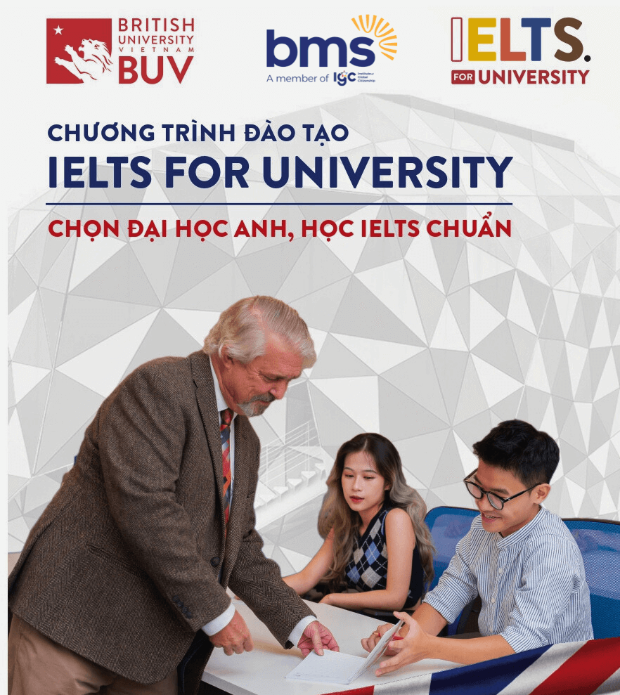 Chương trình IELTS for University của BUV được giảng dạy bởi đội ngũ giáo viên bản ngữ giàu kinh nghiệm, đồng thời được thiết kế và giảng dạy theo tiêu chuẩn Anh Quốc.