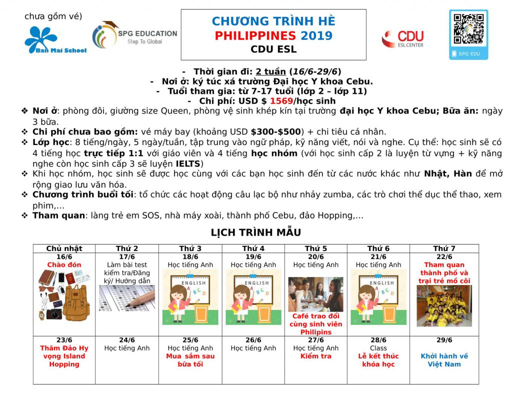 ✔️ PHILIPPINES: Thúc đẩy năng lực Tiếng Anh – (chi tiết chương trình TẠI ĐÂY)