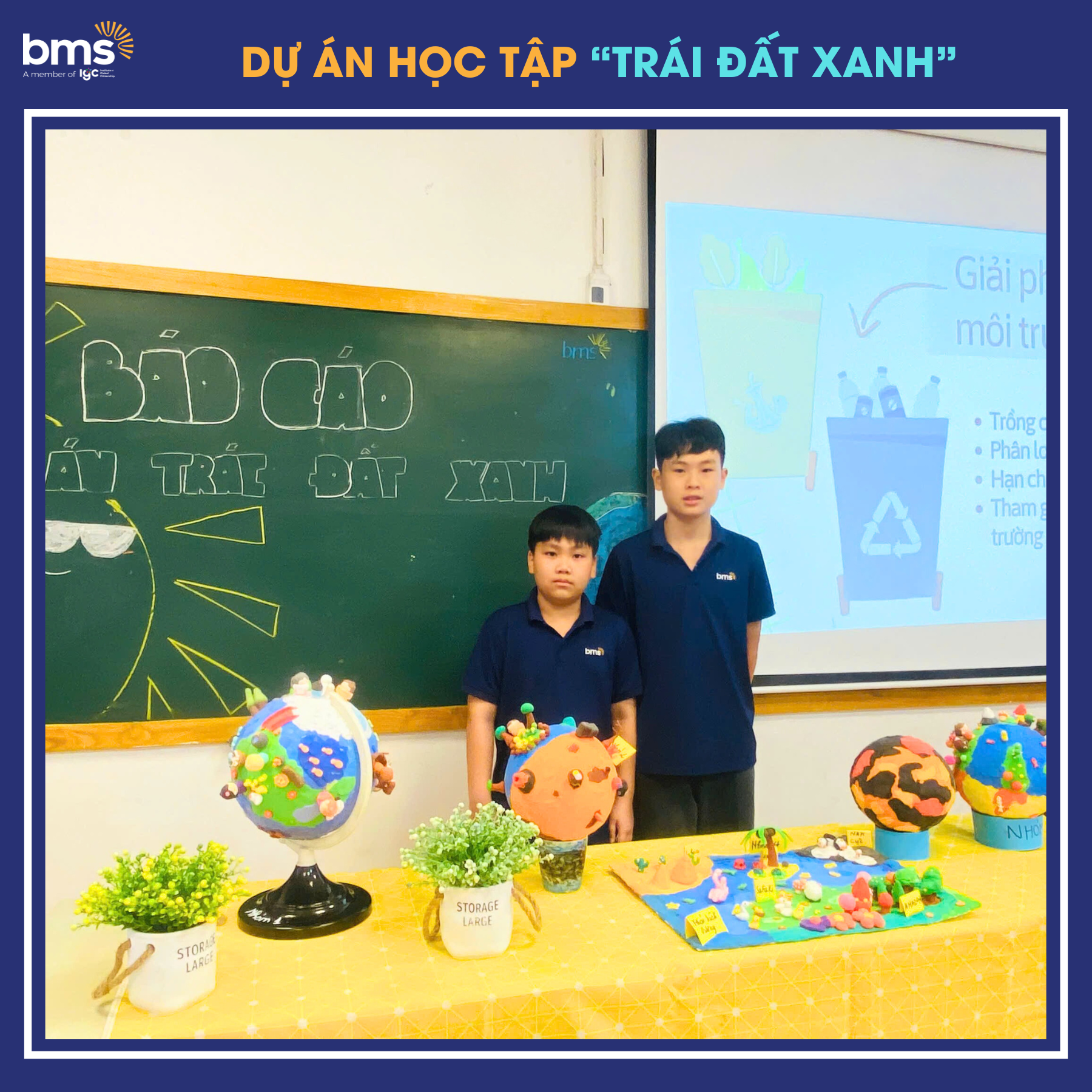 Qua những sản phẩm thủ công ngộ nghĩnh, những dòng chữ giản dị mà sâu sắc, các bạn học sinh BMS đã góp tiếng nói nhỏ bé nhưng đầy sức mạnh vào câu chuyện chung của thế giới: dù còn nhỏ tuổi, chúng ta vẫn có thể cùng nhau tạo nên những hành động xanh để hướng tới một tương lai sáng, cho chính mình và cho hành tinh xanh tươi mãi mãi.