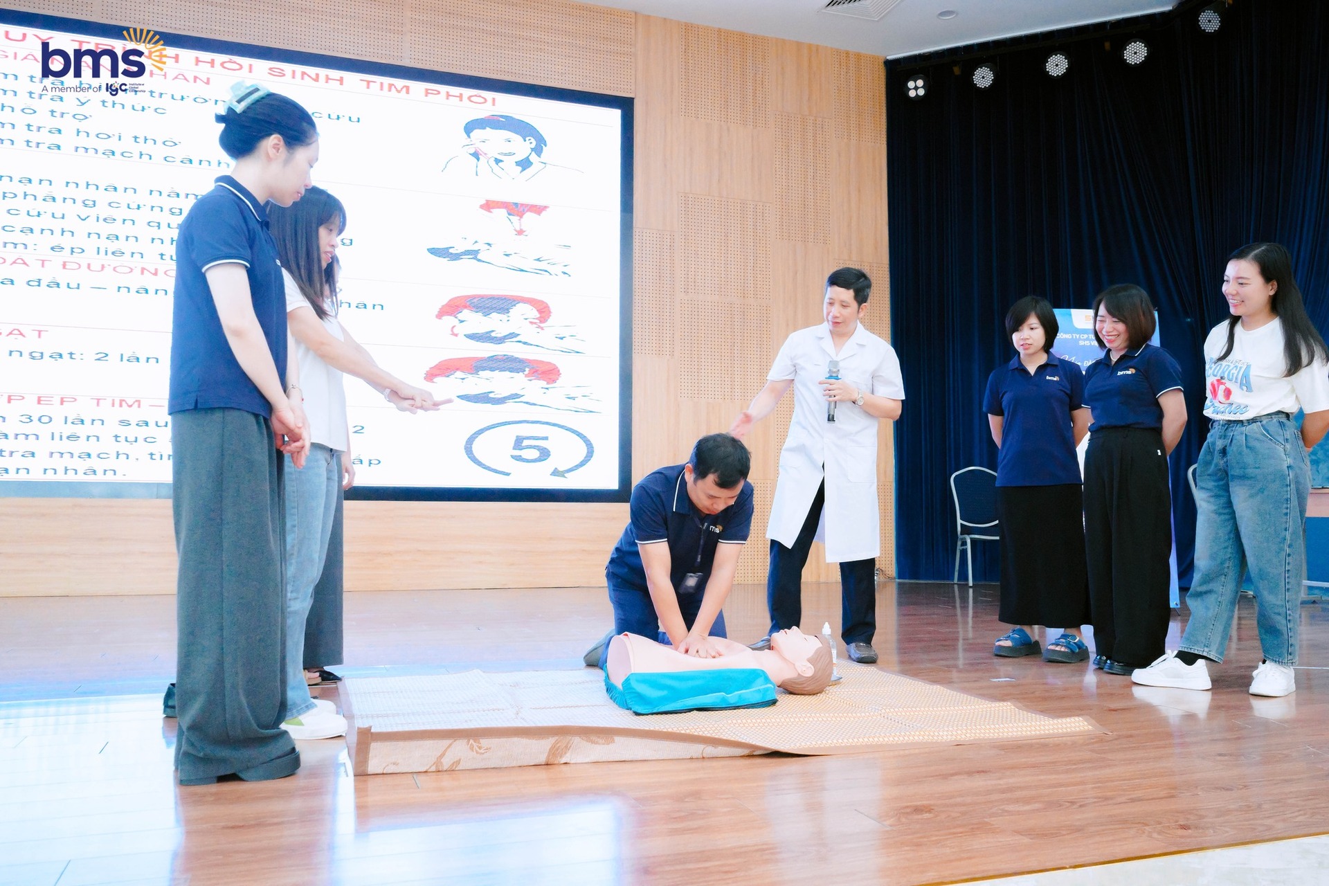 BMS Hà Nội: Trường THCS – THPT Ban Mai tổ chức chương trình tập huấn sơ cấp cứu dành cho cán bộ, giáo viên và nhân viên, nhằm nâng cao kỹ năng xử lý tình huống, đảm bảo an toàn cho học sinh và xây dựng môi trường học đường an toàn, hạnh phúc.
