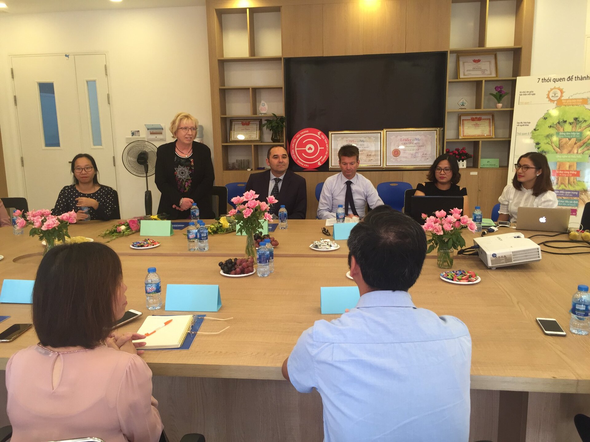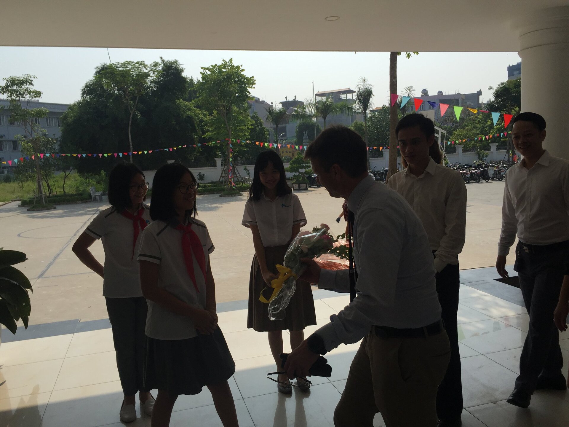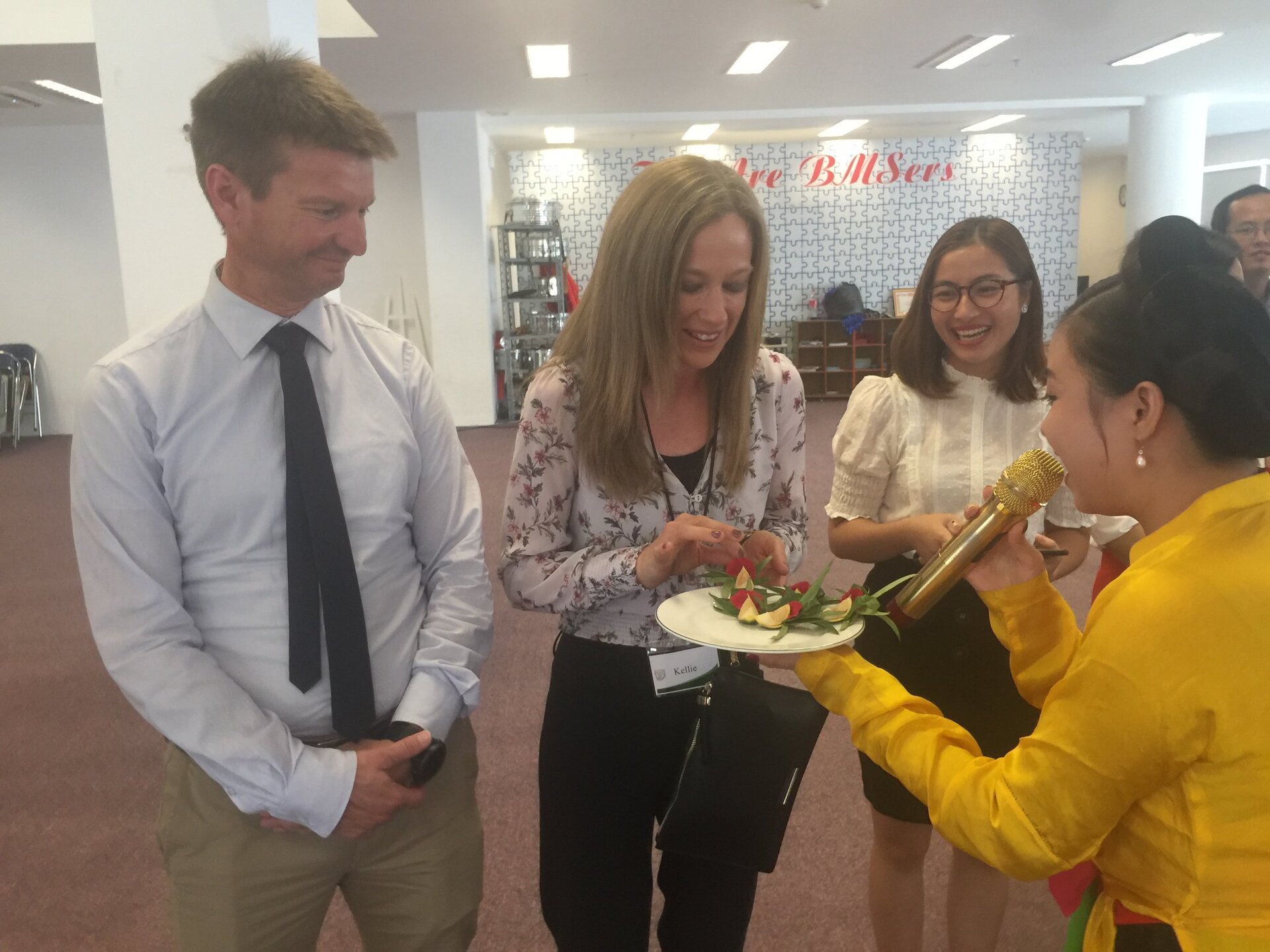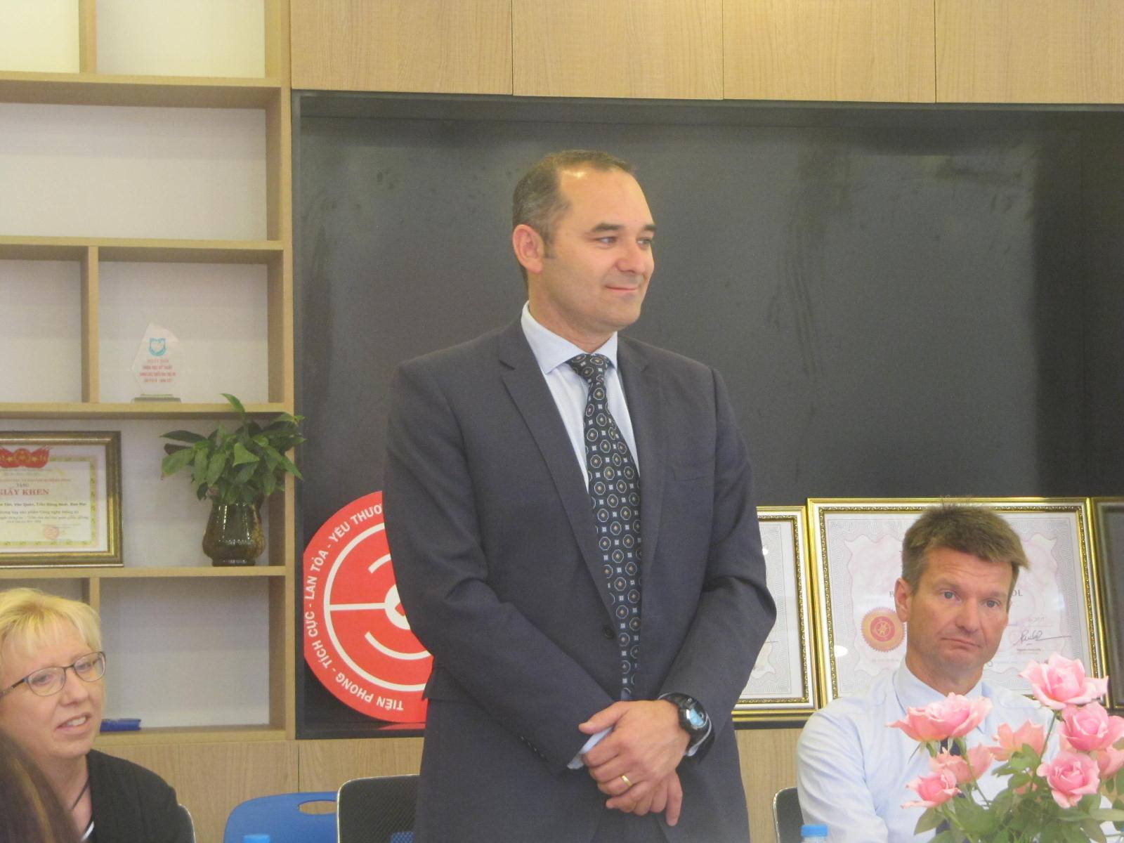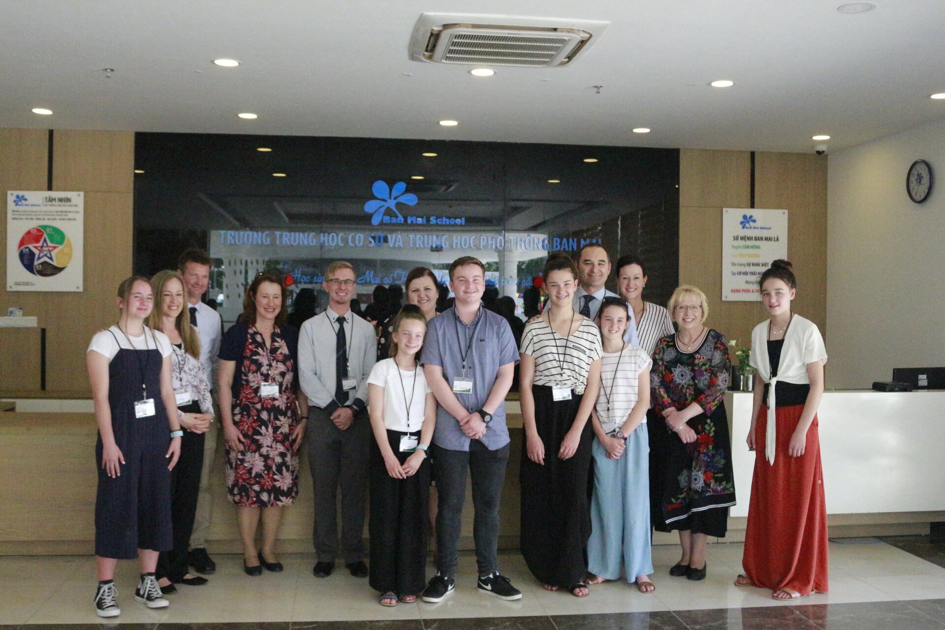 Thầy Hiệu trưởng Andrew Middleton và các Thầy Cô trong Đoàn được Ban Mai chào đón nồng hậu và thân thiện
