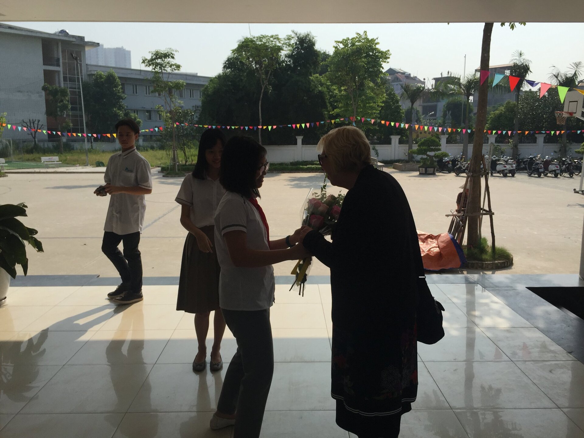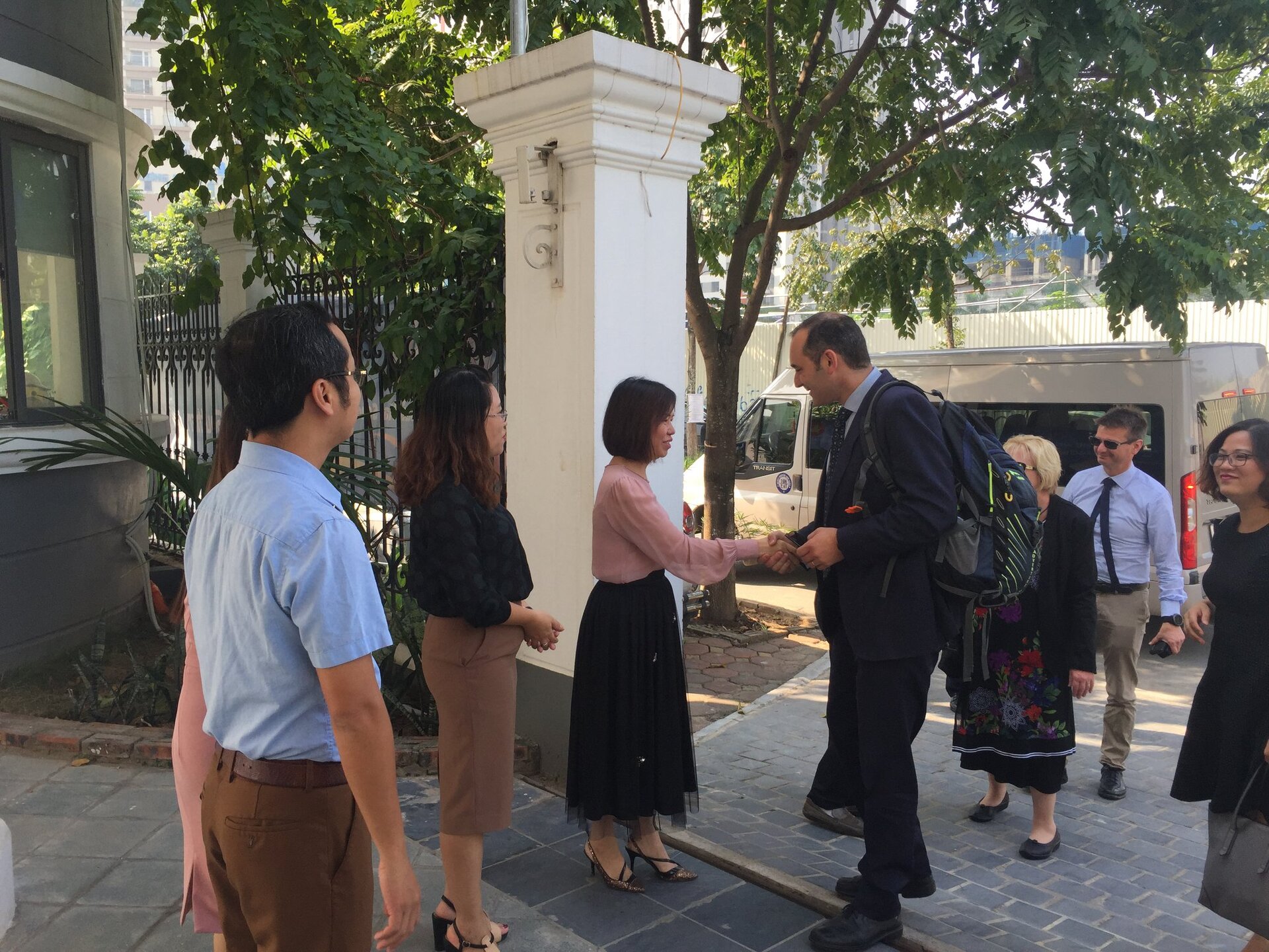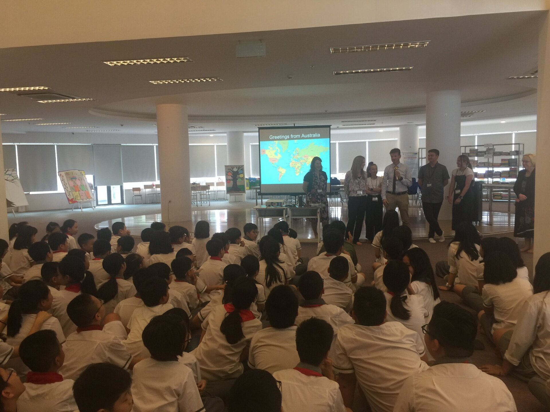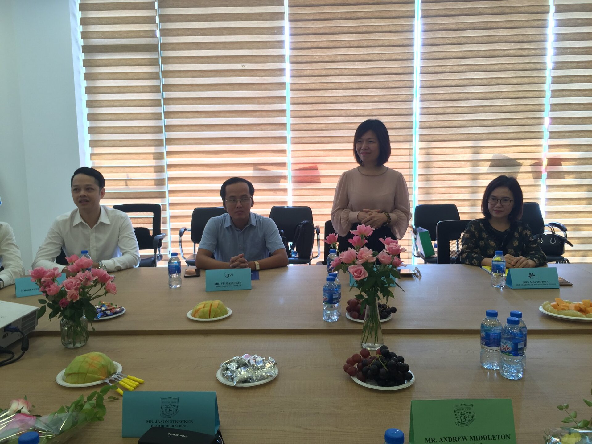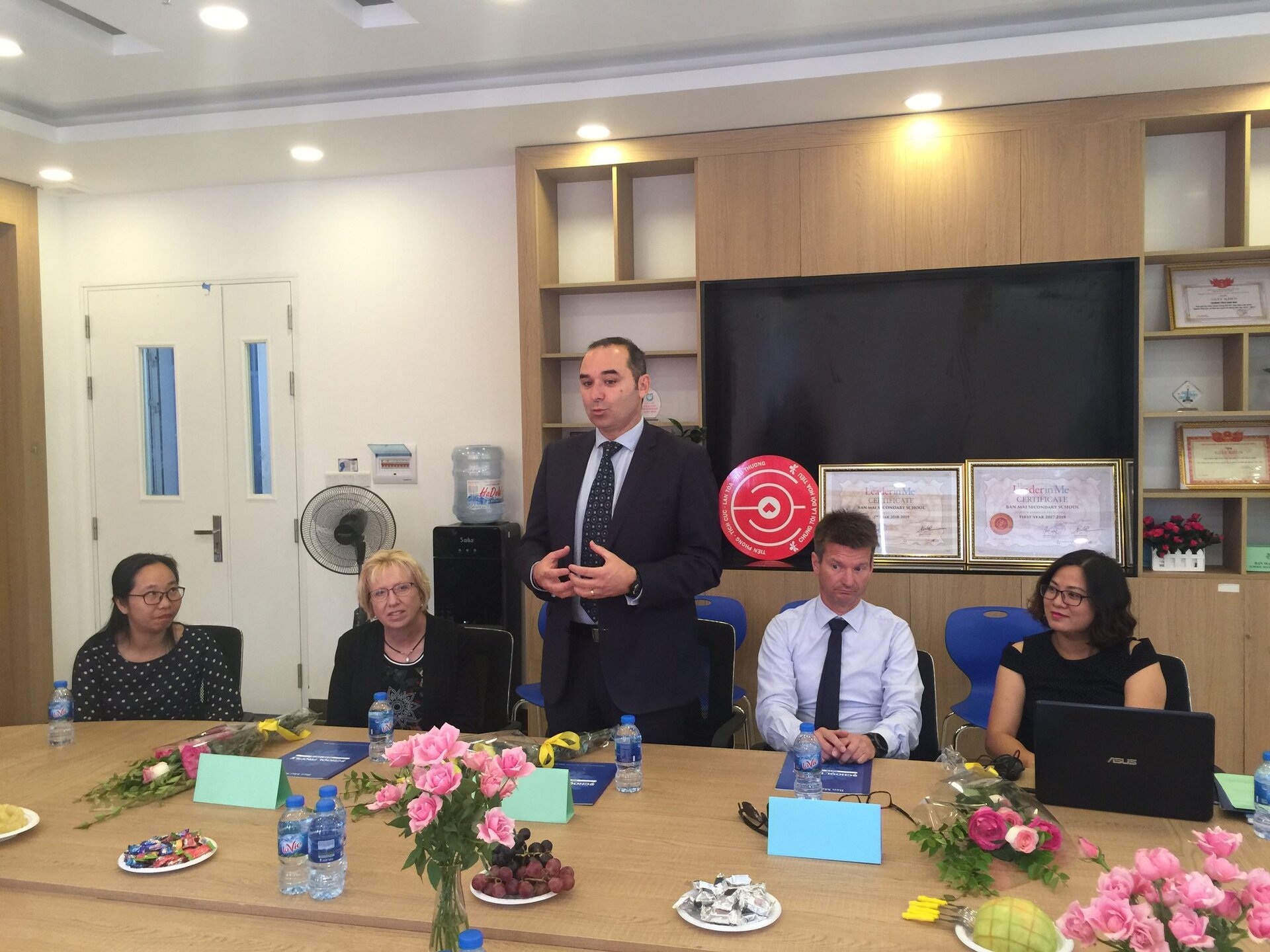 Thầy Hiệu trưởng Andrew Middleton và các Thầy Cô trong Đoàn được Ban Mai chào đón nồng hậu và thân thiện
