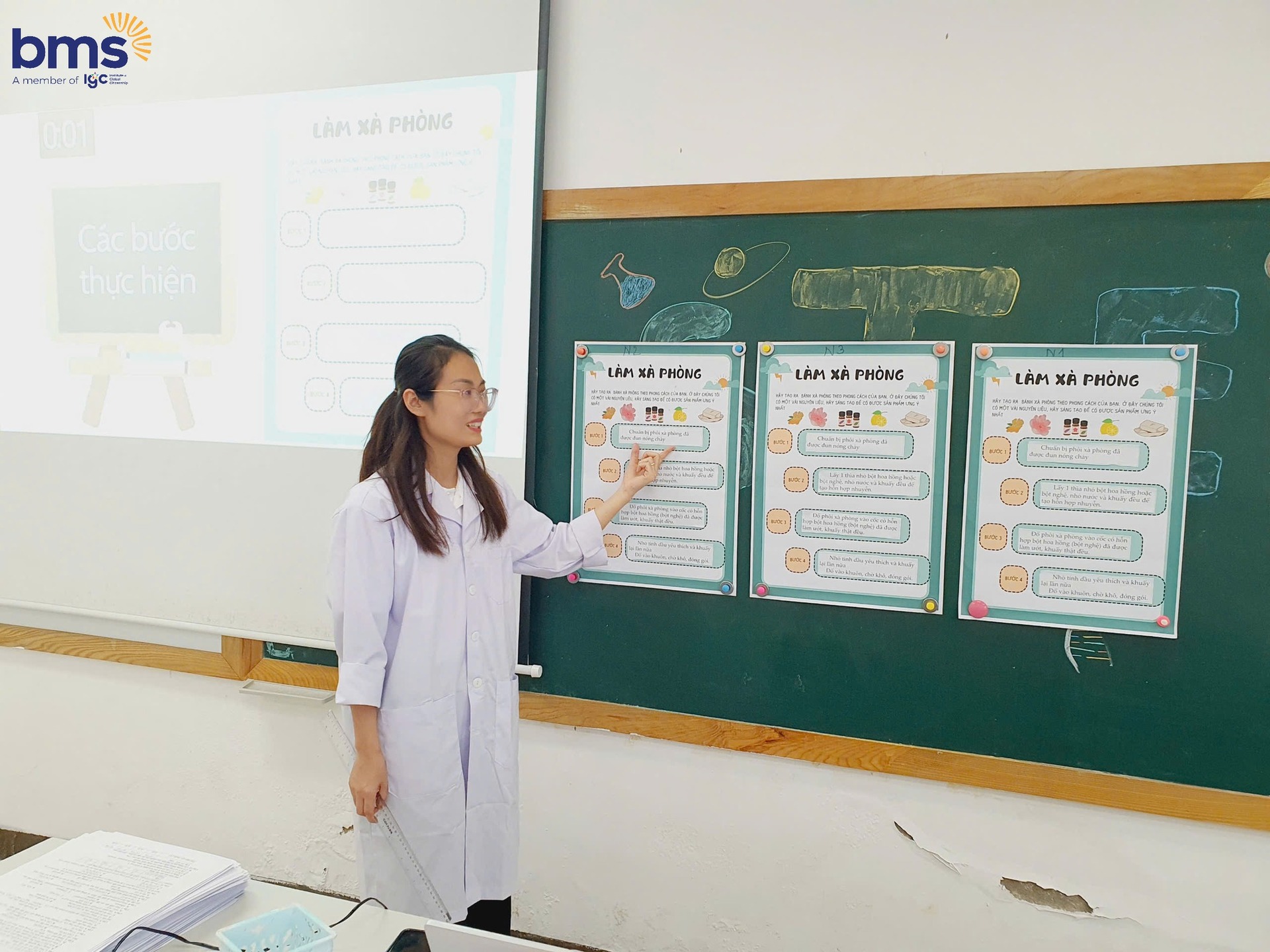 Nhưng sau một ngày tham gia chương trình “Tự tin làm học sinh khối 6” tại Trường THCS Ban Mai, mọi lo lắng như tan biến, thay vào đó là sự háo hức, tự tin và tràn đầy năng lượng.“Con thích nhất là làm xà phòng, lần đầu tiên con được mặc áo thí nghiệm và tự làm ra sản phẩm. Con thấy mình giống nhà khoa học thực sự!” – Tùng Lâm háo hức khoe bánh xà phòng vừa hoàn thành.