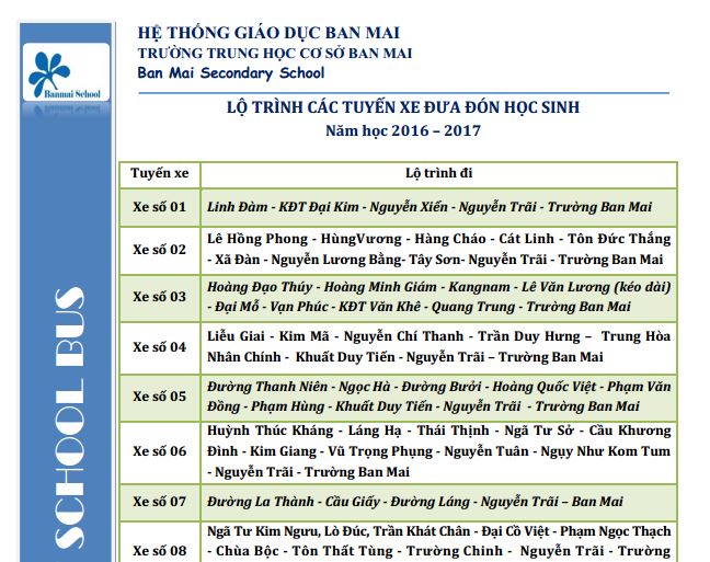 LỘ TRÌNH XE KHỐI THCS