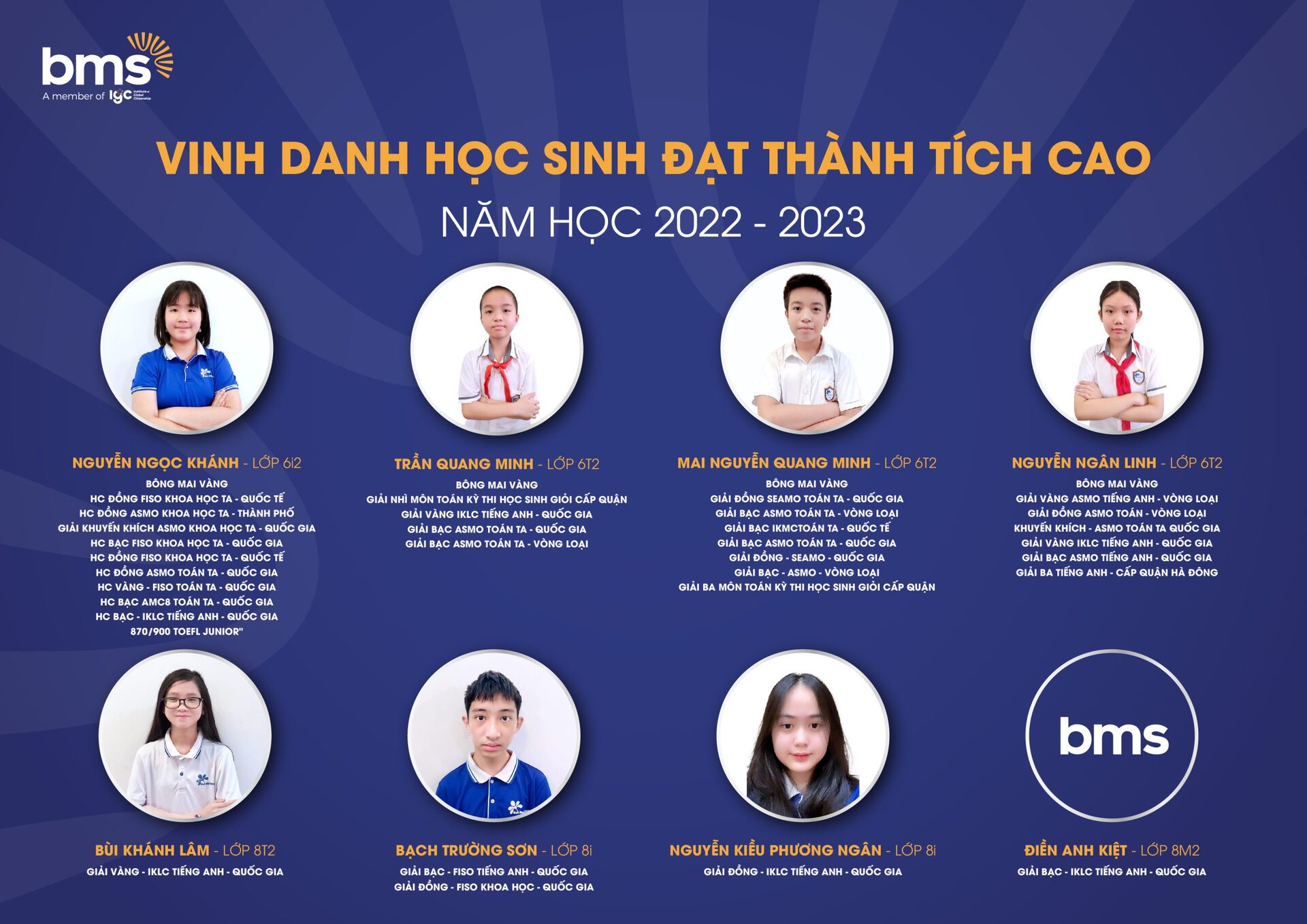 Với chương trình giáo dục vượt trội, môi trường giáo dục an toàn, hiện đại, tôn trọng sự khác biệt, nơi được tự tin thể hiện chính mình, BMSers đã đạt được những thành quả đầy xứng đáng.