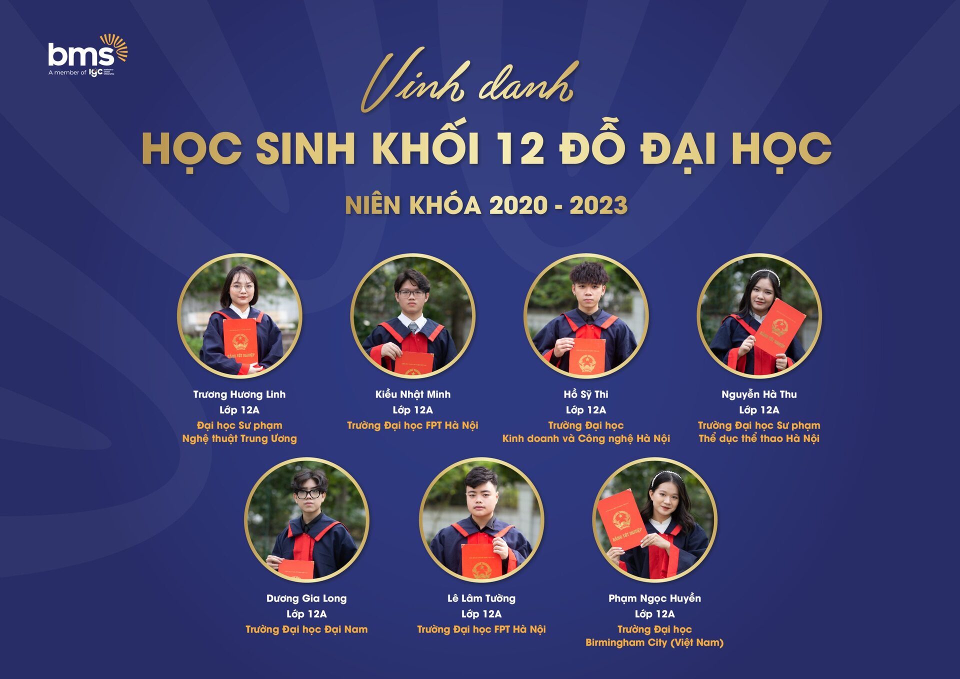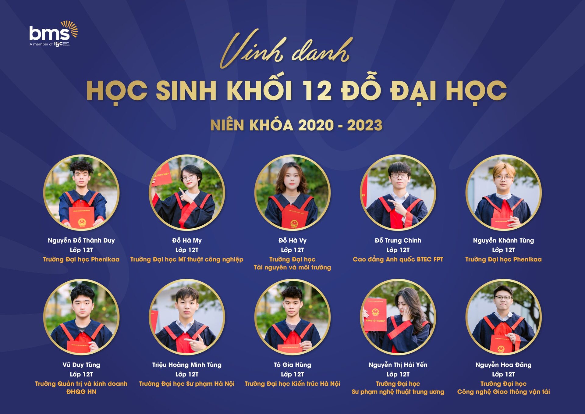 Thành tích ấn tượng mà các BMSers đạt được trong kỳ thi vào Đại học là kết quả của sự nỗ lực không ngừng nghỉ đèn sách, là sự quyết tâm đồng thời là cách thể hiện khả năng, tri thức bản thân cùng với đó là sự đồng hành của Cha Mẹ, Thầy Cô và Nhà trường.