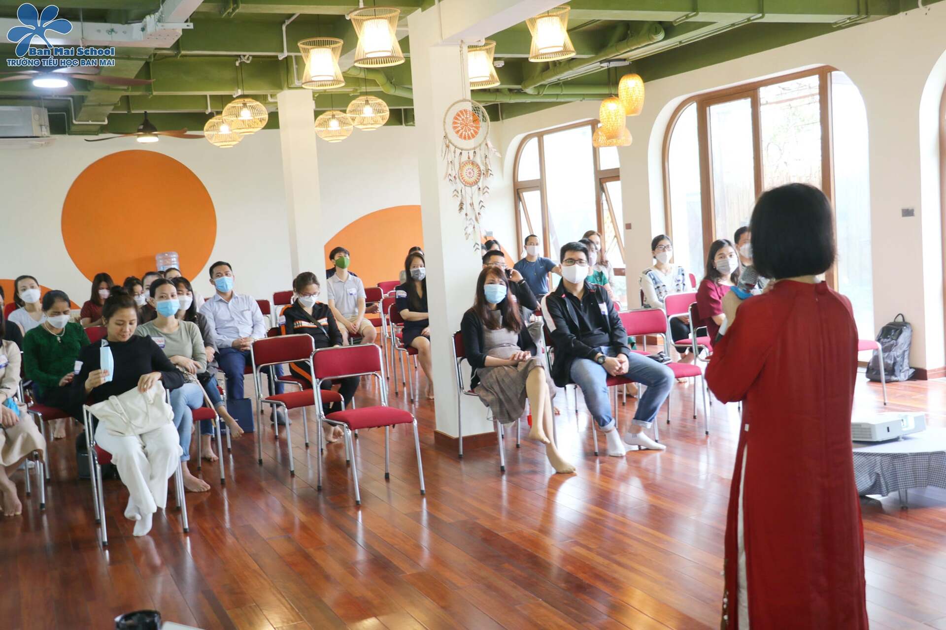 Đồng thời diễn ra cùng khoảng thời gian các con làm bài thi, là Hội thảo “Đánh thức tố chất thiên tài trong con” dành cho các cha mẹ, diễn ra tại Hội trường K1 nhà trường, với phần chia sẻ của cô Mai Thị Lan Anh – Nhà sáng lập Ban Mai school, và cô Nguyễn Thị Thanh Nương – Hiệu trưởng nhà trường.