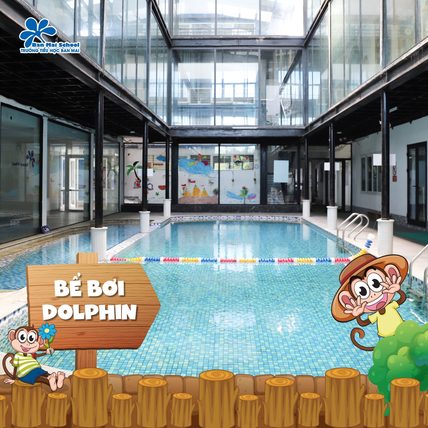 Bể bơi nằm ở tầng 1 trong khu tòa nhà kính hiện đại, thường xuyên được vệ sinh chăm sóc. Đứng ở bất kỳ góc nào cũng thấy một màu xanh mát như Maldives thu nhỏ giữa lòng Ban Mai. Các tiết học bơi của CLB The Light được diễn ra tại không gian này.