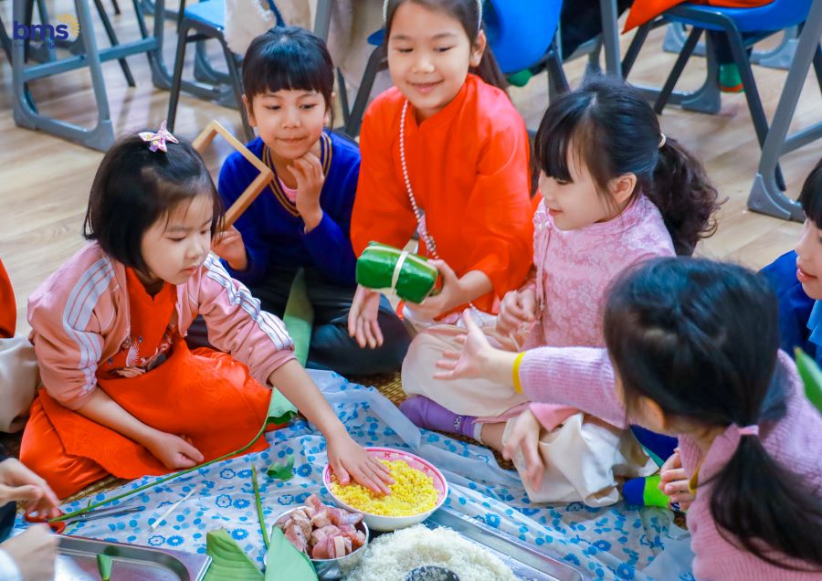 Năm 2025, với mong muốn tái hiện một gam màu Tết truyền thống đậm chất Hà Thành, BMS đã mang tới cho học sinh chuỗi hoạt động Tết cộng đồng 2025 đặc sắc với những hoạt động: Bánh chưng xanh – Thịt đông dưa hành, Bữa cơm đoàn viên, Hội Xuân – Ngã tư kẻ chợ.