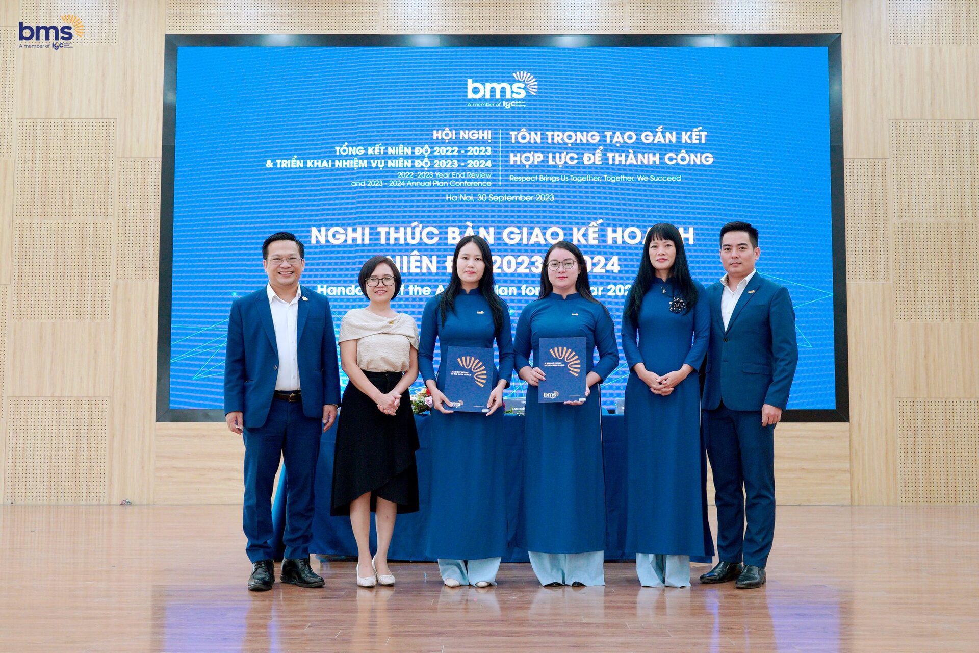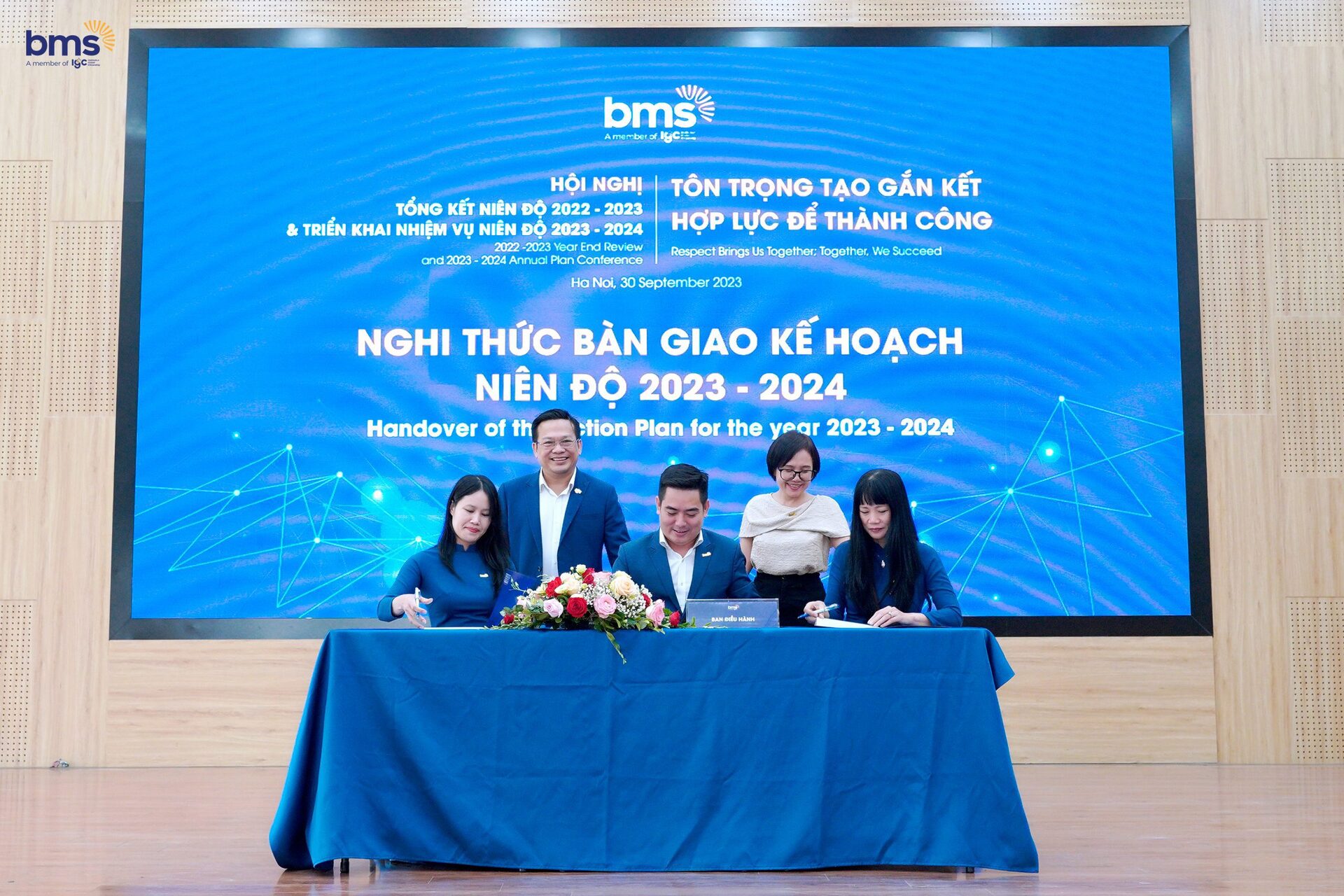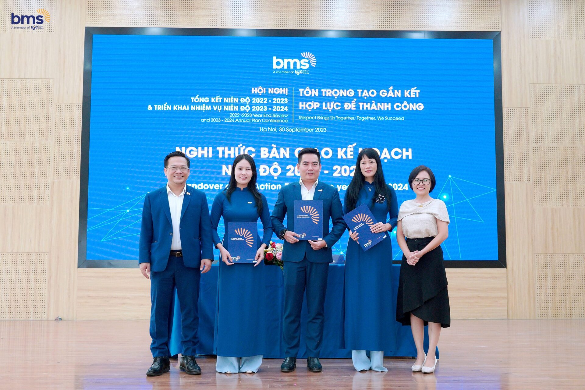 Tại Hội nghị, Ban lãnh đạo Hệ thống và Hiệu trưởng các Nhà trường đã thực hiện nghi thức bàn giao Kế hoạch niên độ 2023-2024, dựa trên tinh thần hợp lực, quyết tâm cao độ trong việc thực hiện các định hướng, kế hoạch mới và hướng đến sứ mệnh kiến tạo “tương lai tươi sáng trong thế giới mở” đến các thế hệ học sinh BMS.