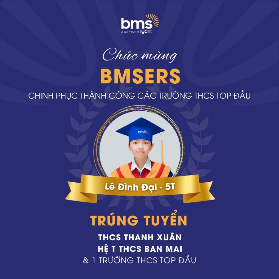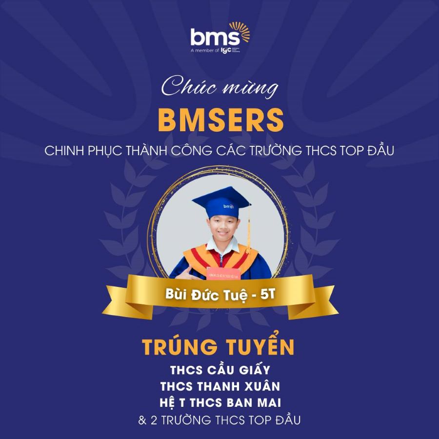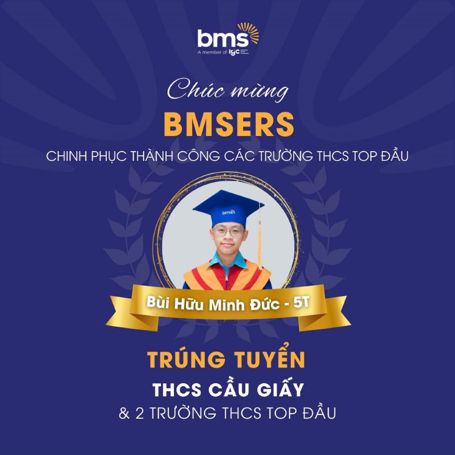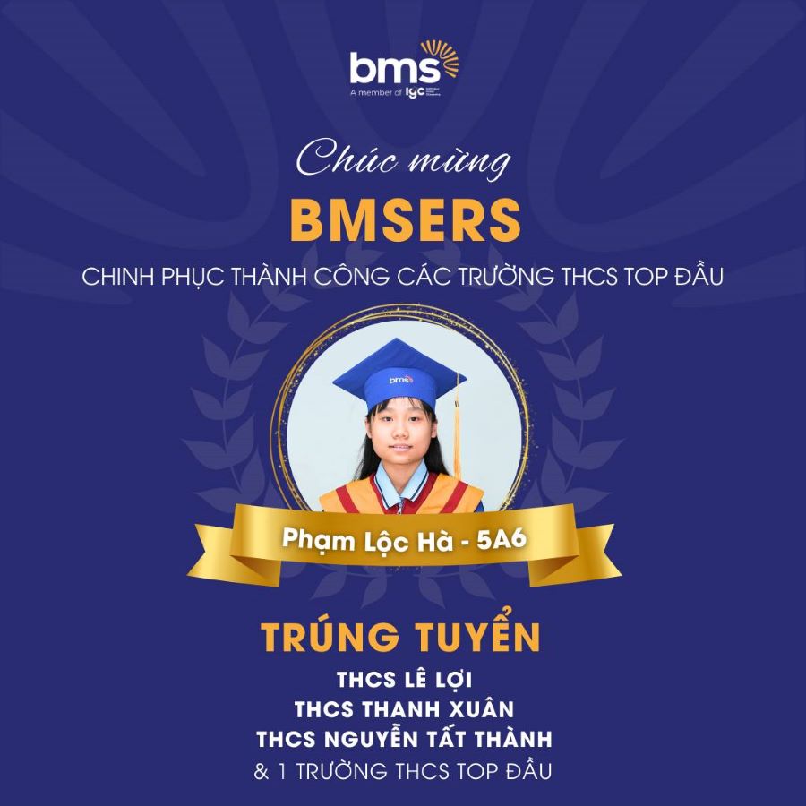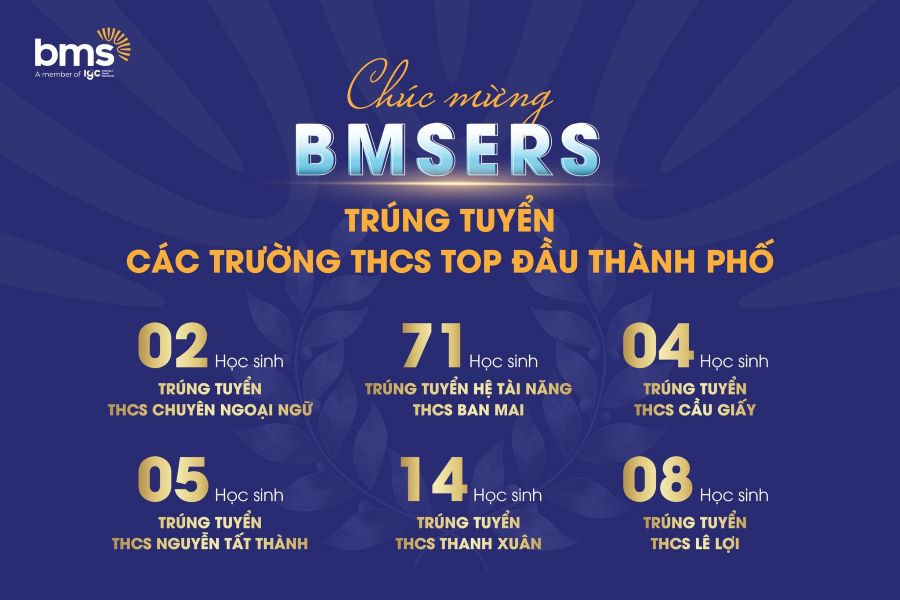 Những thành tích ấn tượng này là kết quả của quá trình nỗ lực không ngừng của các em trong những năm học tại BMS; cùng với sự hỗ trợ, đồng hành của Gia đình và thầy cô giáo. BMS chúc mừng những "chiến binh" tài năng! Chúc các em luôn tỏa sáng rực rỡ và gặt hái được thật nhiều thành công trên con đường của riêng mình.