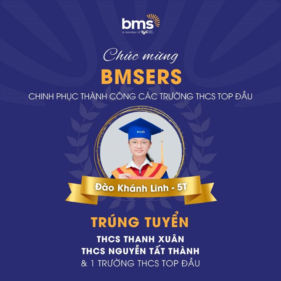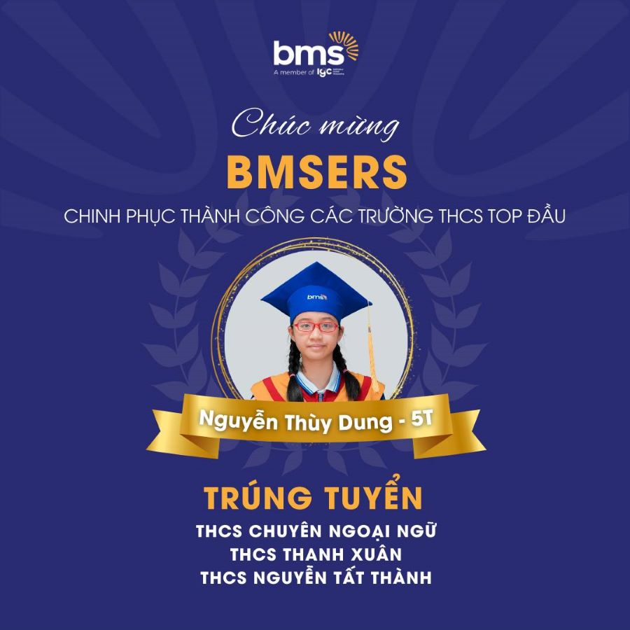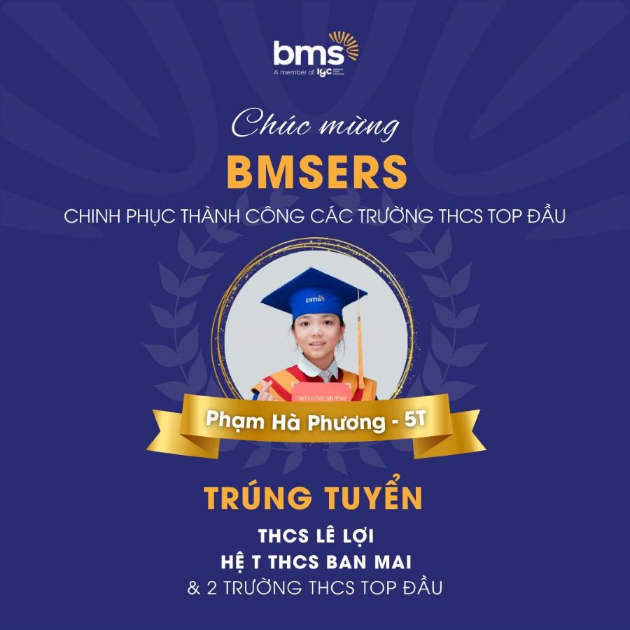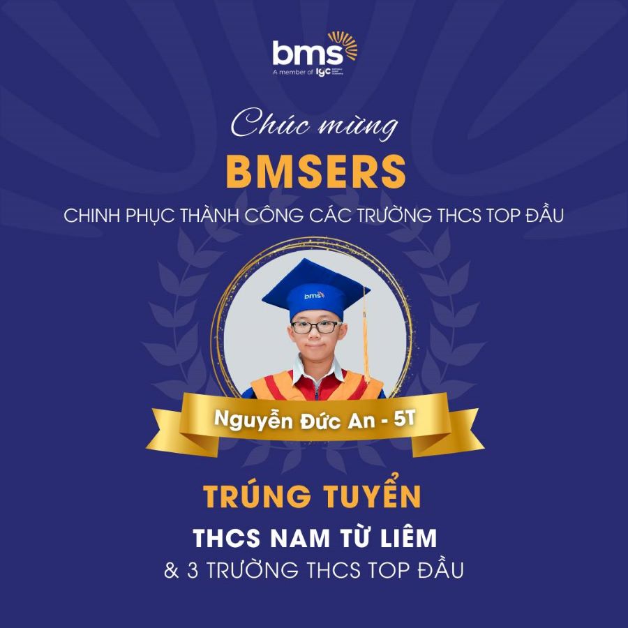 Những thành tích ấn tượng này là kết quả của quá trình nỗ lực không ngừng của các em trong những năm học tại BMS; cùng với sự hỗ trợ, đồng hành của Gia đình và thầy cô giáo. BMS chúc mừng những "chiến binh" tài năng! Chúc các em luôn tỏa sáng rực rỡ và gặt hái được thật nhiều thành công trên con đường của riêng mình.