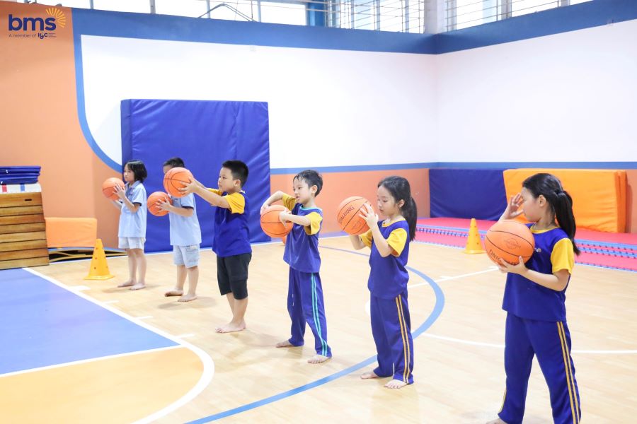 BMSers hào hứng rèn luyện kỹ thuật ném bóng vào rổ tại CLB Bóng rổ