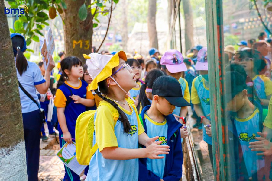 Ngay từ những bước chân đầu tiên khi bước vào công viên Thủ Lệ, các bạn học sinh đã mở rộng đôi mắt tò mò và tâm hồn háo hức để khám phá bức tranh thiên nhiên sống động. Những loài vật, những hàng cây, hay những âm thanh đều là một trải nghiệm mới mẻ, thu hút các em chăm chú quan sát và đặt ra vô vàn câu hỏi thú vị.
