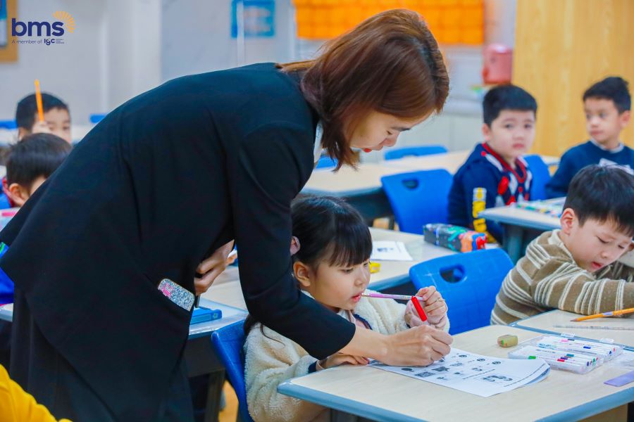 Thầy cô BMS tận tình hướng dẫn các bạn nhỏ tại lớp ôn thi
