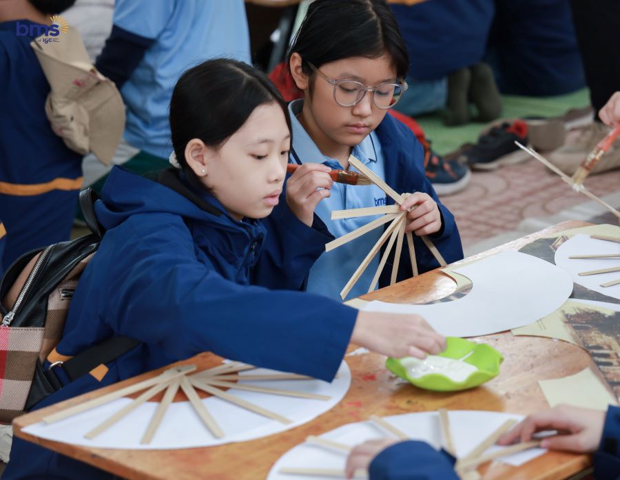 BMSers hào hứng trong hoạt động trải nghiệm làm quạt giấy truyền thống