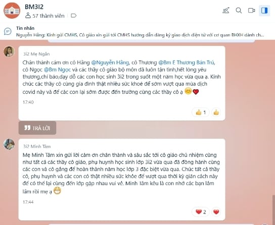 “Bên cạnh các giải pháp cô đưa ra, cũng như những phương pháp các bố mẹ đã chia sẻ, cô tin các phụ huynh cũng sẽ có những cách làm riêng để hỗ trợ các con. Và một điều quan trọng cô muốn chia sẻ với bố mẹ, nhất là trong mùa dịch này. Đó là: Cha mẹ bình an mới lan tỏa được sự bình an. Chúng ta cũng sẽ cố gắng nuôi dưỡng, tìm sự bình an cho bản thân mình, từ đó các con và những người thân trong gia đình cũng sẽ bình an. Chúc cho dịch bệnh qua mau để mọi thứ trở về đúng quỹ đạo của cuộc sống, và cô trò chúng ta lại được hội ngộ, hạnh phúc mỗi ngày dưới mái trường Ban Mai”. – Cô giáo Vân Hường bày tỏ.