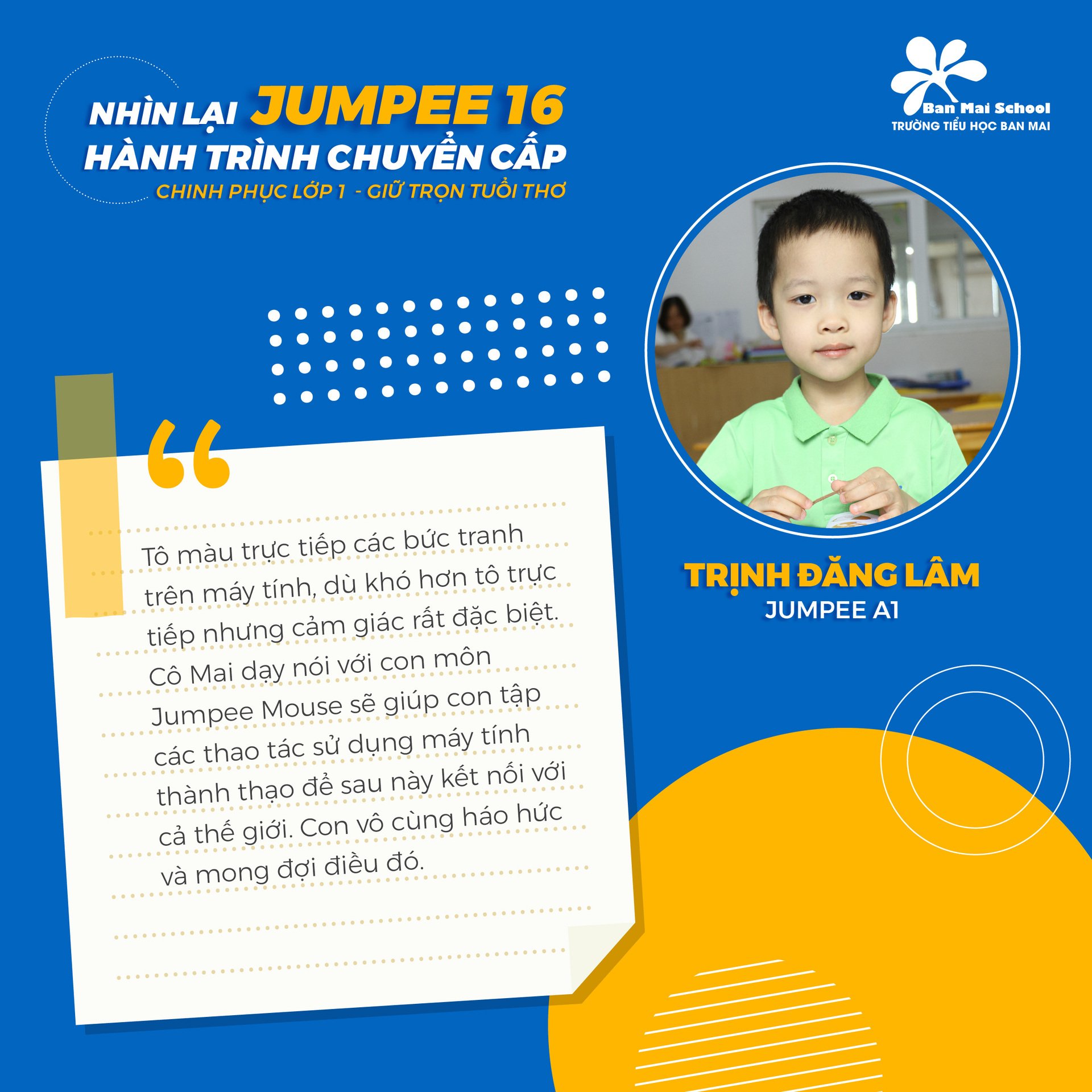 Năm học 2021-2022 là một năm học vô cùng đặc biệt bởi những biến động của dịch Covid-19. Với học sinh khối Jumpee, việc học online tưởng chừng không thể… Nhưng tâm huyết của các thầy cô giáo khối Jumpee, các con đã được truyền cảm hứng, nhanh chóng thích nghi và trở thành những em bé 5 tuổi tự tin làm chủ công nghệ trong mùa Covid-19.
