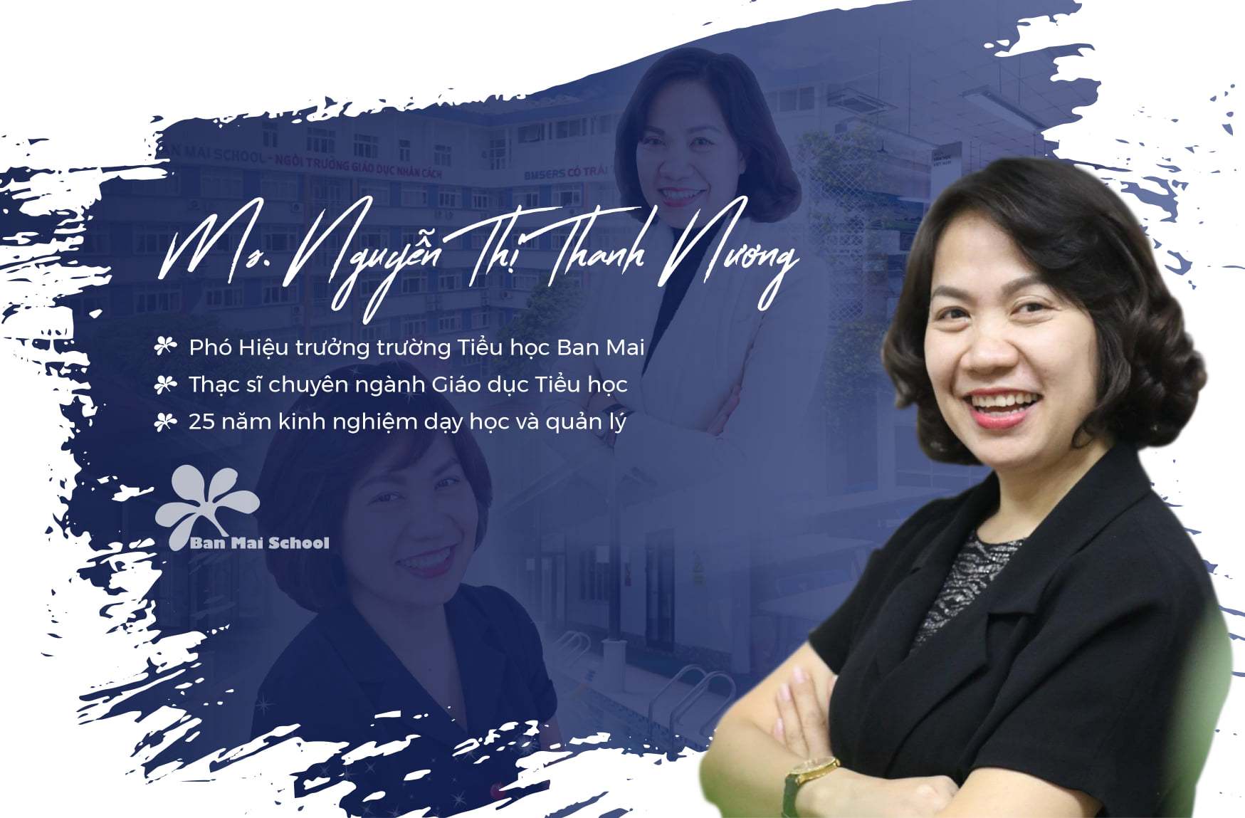 Thạc sĩ Nguyễn Thị Thanh Nương – Phó Hiệu trưởng trường Tiểu học Ban Mai là gương mặt quen thuộc của biết bao thế hệ học sinh Ban Mai.