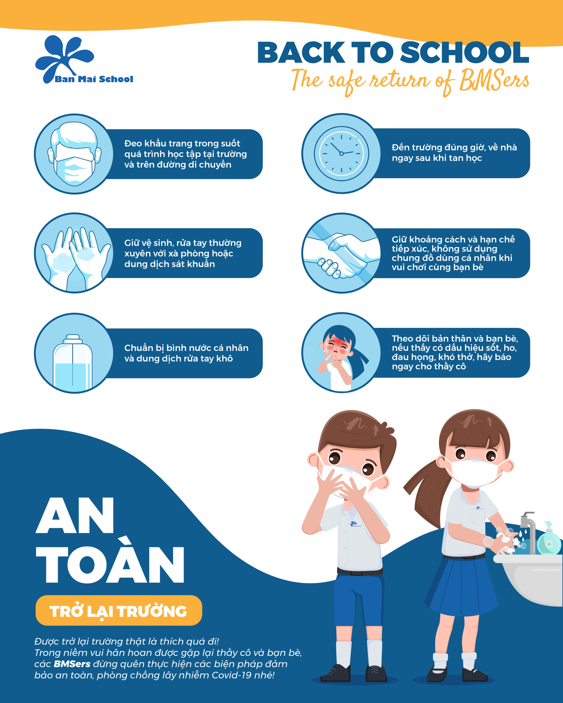 * Con đeo khẩu trang suốt quá trình học tập tại trường và trong quá trình di chuyển đến trường hoặc về nhà.