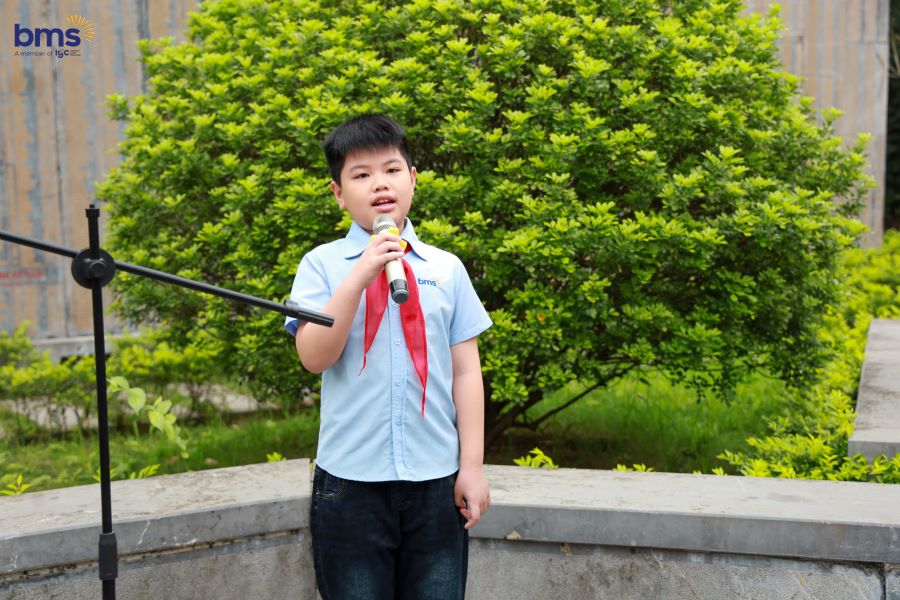 Ngay sau đó, Lễ Kết nạp Đội cho học sinh Khối 3 năm học 2024 - 2025 đã diễn ra trong không khí trang nghiêm tại Đài tưởng niệm. Khi lá cờ đỏ sao vàng tung bay trong gió, các em đồng thanh cất vang lời hứa Đội viên, tự hào đeo lên vai chiếc khăn quàng đỏ – biểu tượng cao quý của Đội Thiếu niên Tiền phong Hồ Chí Minh. Giây phút ấy không chỉ là niềm vinh dự lớn lao, mà còn là dấu mốc quan trọng trong hành trình trưởng thành của mỗi BMSer. Chiếc khăn quàng đỏ trên vai như một lời nhắc nhở, một động lực để các em không ngừng phấn đấu, rèn luyện đạo đức, trau dồi tri thức, trở thành con ngoan, trò giỏi, cháu ngoan Bác Hồ, xứng đáng với truyền thống vẻ vang của Đội.