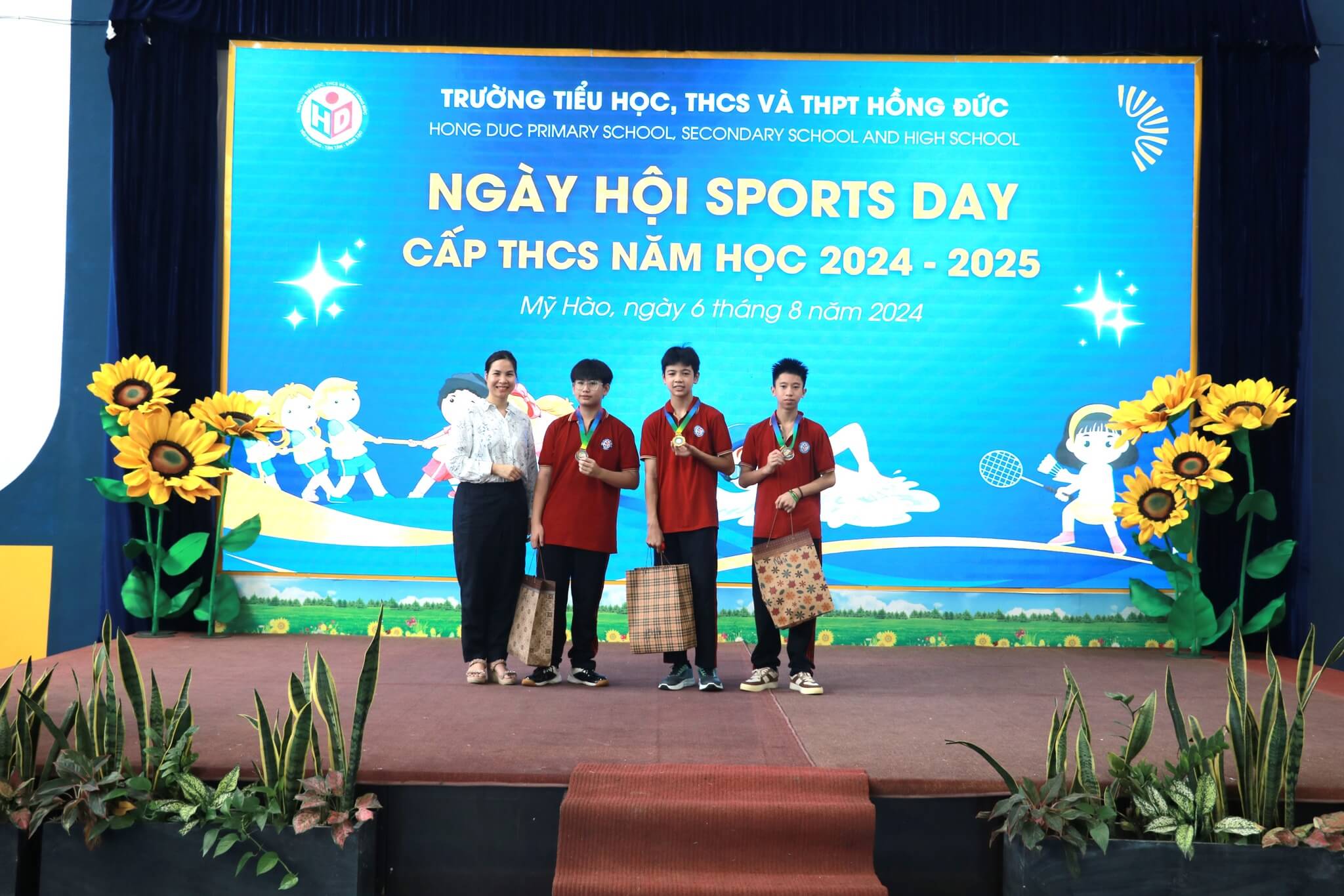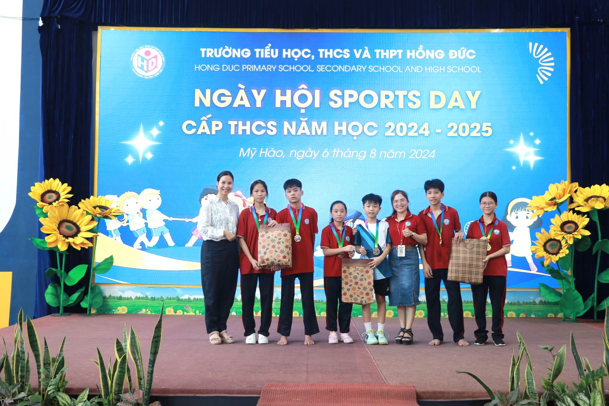 Trước tiên là vào sáng ngày 06/08/2024 ngày Hội Sports Day cấp THCS đã được tổ chức với sự tham gia của rất nhiều vị Đại biểu, quý thầy cô và các em học sinh của trường Hồng Đức. Thông qua các nội dung thi đấu sẽ chọn ra các cá nhân, tập thể có thành tích xuất sắc nhất để trao thưởng.